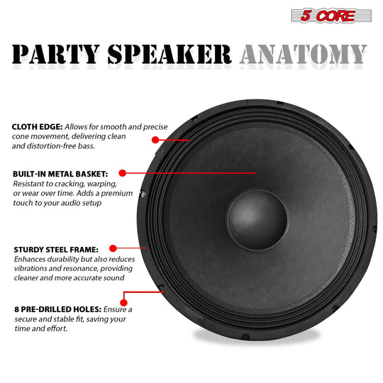 5 Core 15 Inch Guitar Speaker Replacement 450W 4 Ohm Low Distortion for Electric Guitar Amp Cabinet