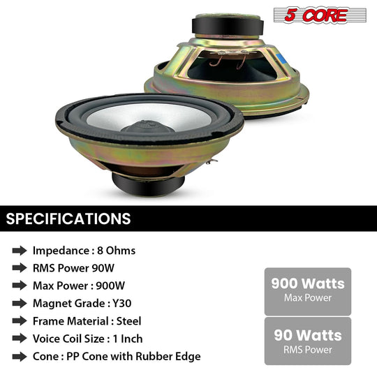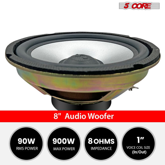 5 Core 8 Inch Subwoofer 900W PA DJ Sub Woofer Speaker 8Ohm w Deep Bass Replacement Component Speaker