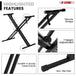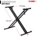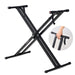 Experience unmatched convenience and durability with this heavy-duty keyboard stand, designed for both beginners and pros. Featuring an ergonomic trigger quick release, easily adjust height from 7.25" to 39" and width up to 39.5". The foldable and portable design weighs only 6 lbs, perfect for travel or storage. Built from strong 1” tubular steel, it supports up to 66 lbs and fits most 49 to 88-key digital pianos, MIDI keyboards, and synthesizers. Anti-slip rubber feet and adjustable leveling ensure stability on any surface. |