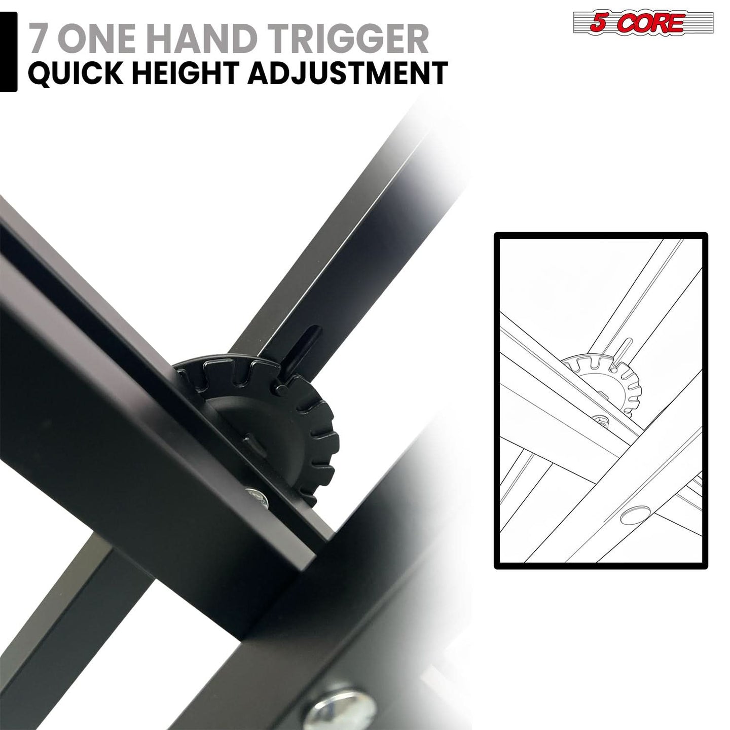 【Quick Release Height Adjustment】 Easily adjust your keyboard stand from 7.25" to 39" using the one hand trigger quick release system! Ideal for sitting or standing while playing your keyboard, digital piano, or MIDI.