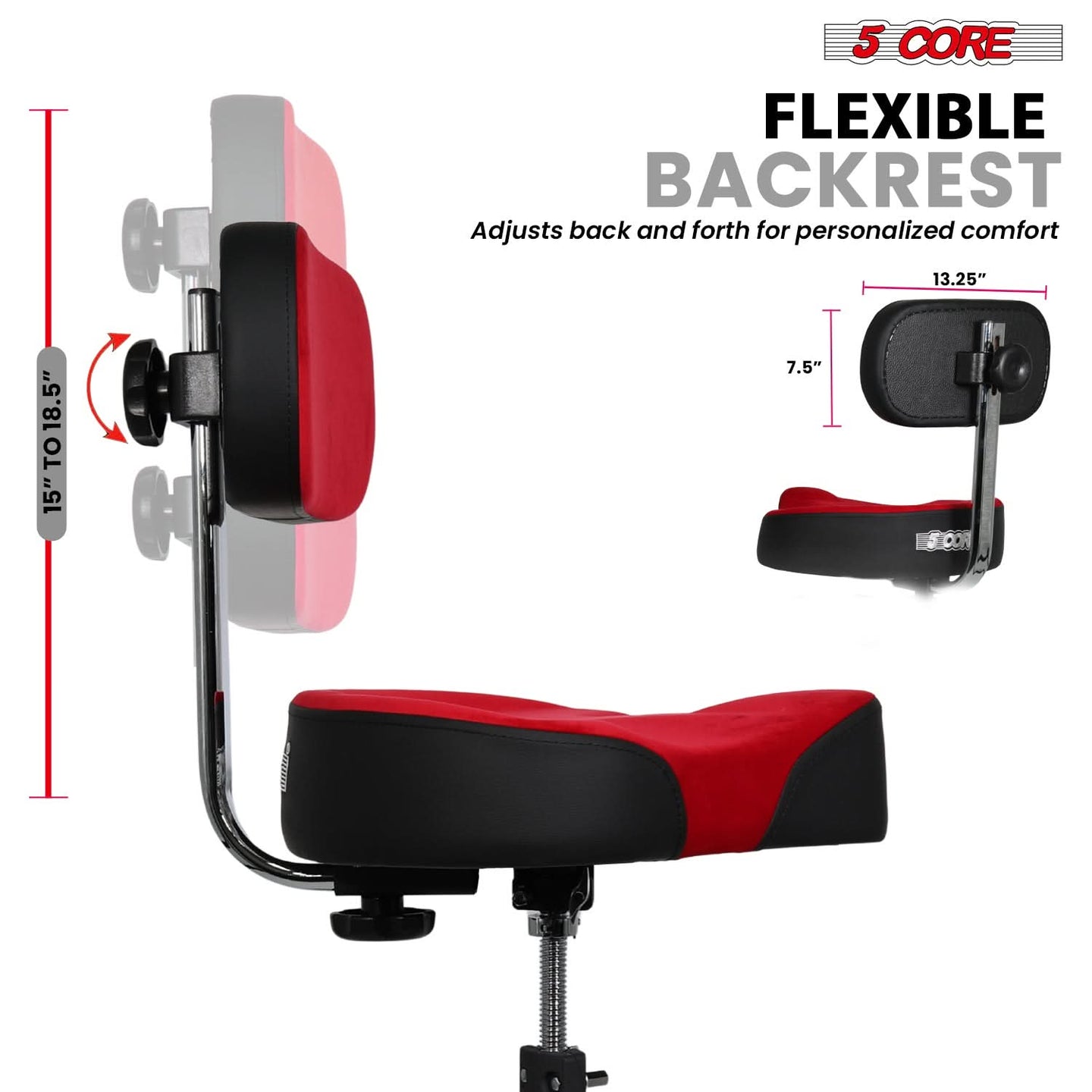 Enhance your drumming experience with this premium drum throne featuring a 4-inch thick velvet-padded seat for all-day comfort. The removable backrest offers adjustable lower back support, while the 360° swivel design allows smooth movement during practice or performance. Easily adjust the seat height from 20”–26.5” to find your perfect position. Built with a heavy-duty iron tripod base and non-slip rubber feet, this drum chair provides stability and durability for stage, studio, or home use. Sleek velvet and PU leather finish ensures style, making it a versatile musician stool for any drummer or performer.