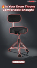 【Backrest for Lumbar Support】Features a sturdy, adjustable drum throne backrest that provides excellent lumbar support during extended practice or live performance. Promotes healthy posture while drumming, making it a versatile drum seat with backrest or musician chair.
