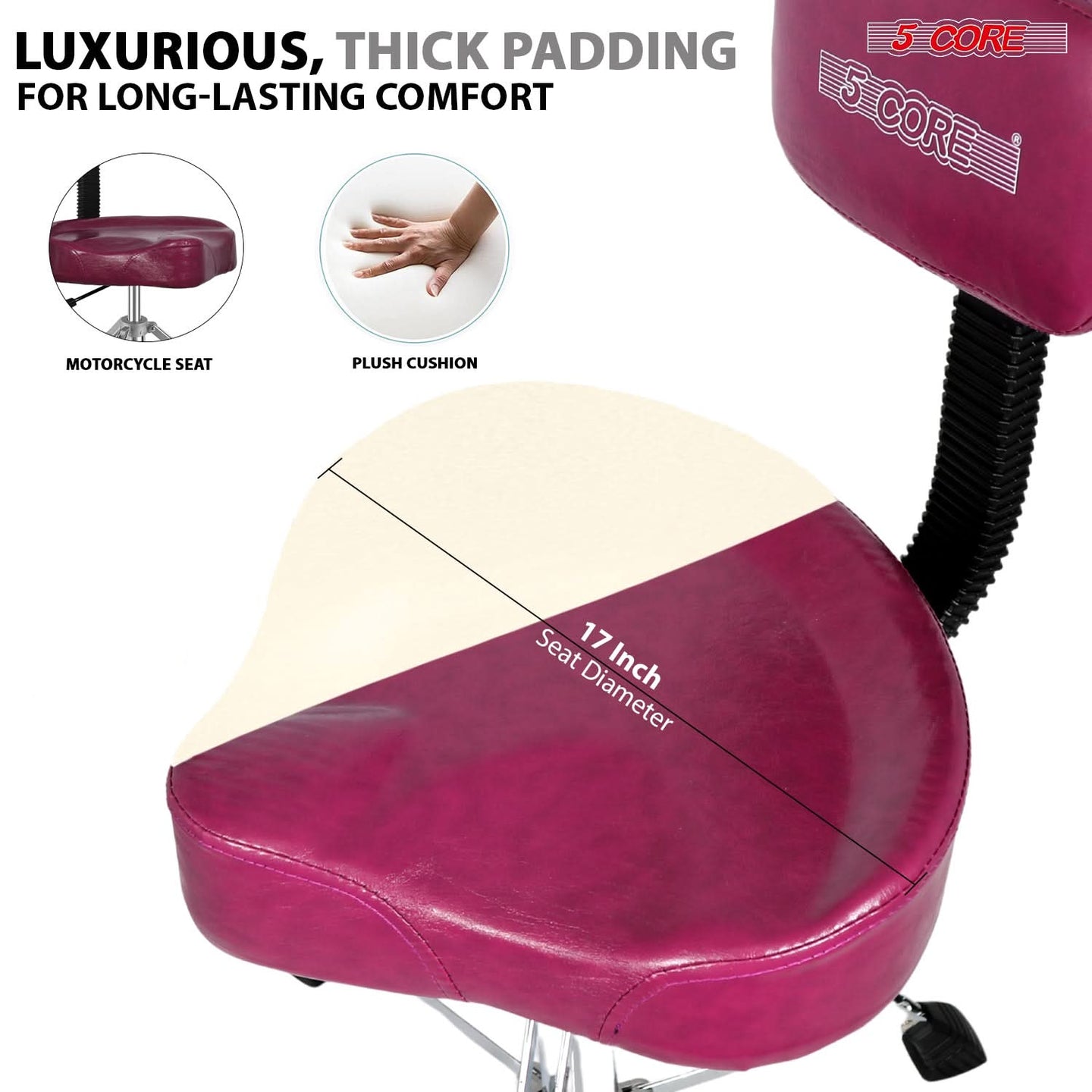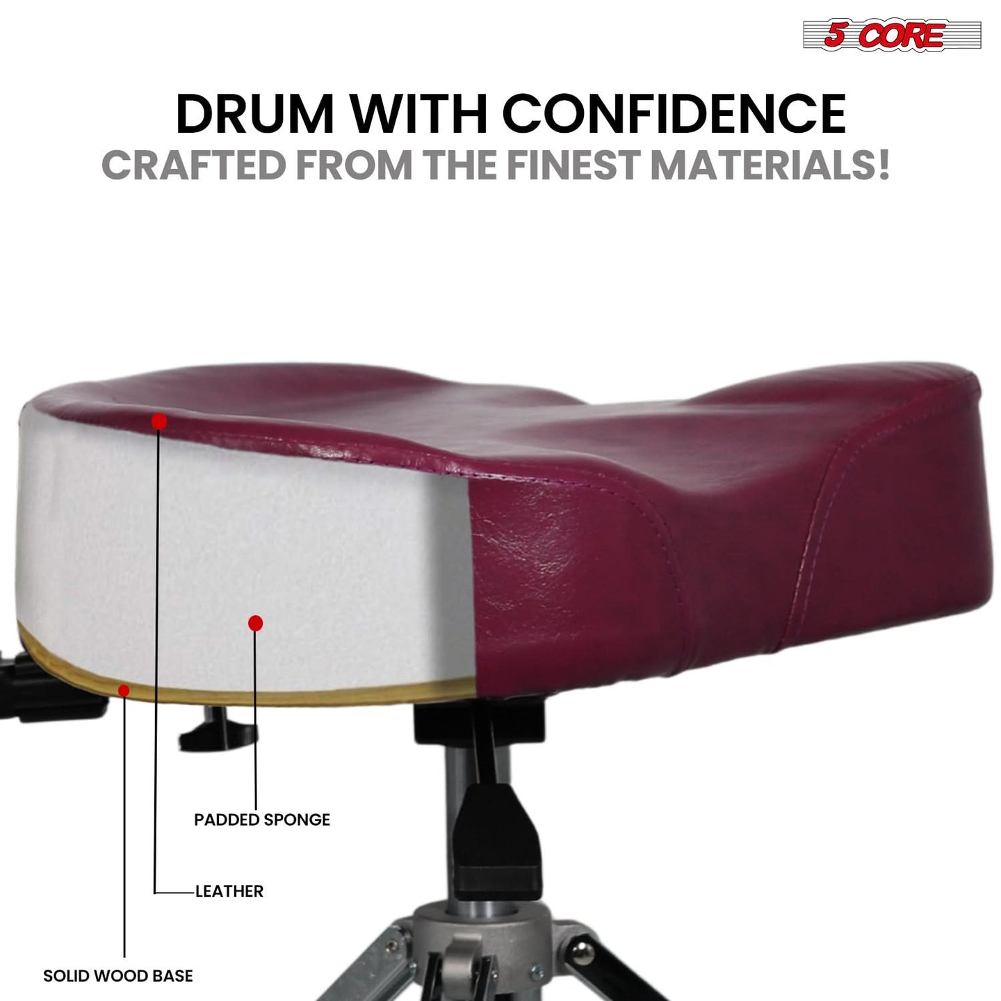 【Ergonomic & Comfortable Drum Throne】 Enjoy long jam sessions with this 4” thick high-density foam seat, designed for superior comfort and support. The 17 x 15” saddle-shaped drum seat evenly distributes weight, reducing tailbone pressure and ensuring a fatigue-free performance. Perfect as a drum throne, drum seat, or musician stool.