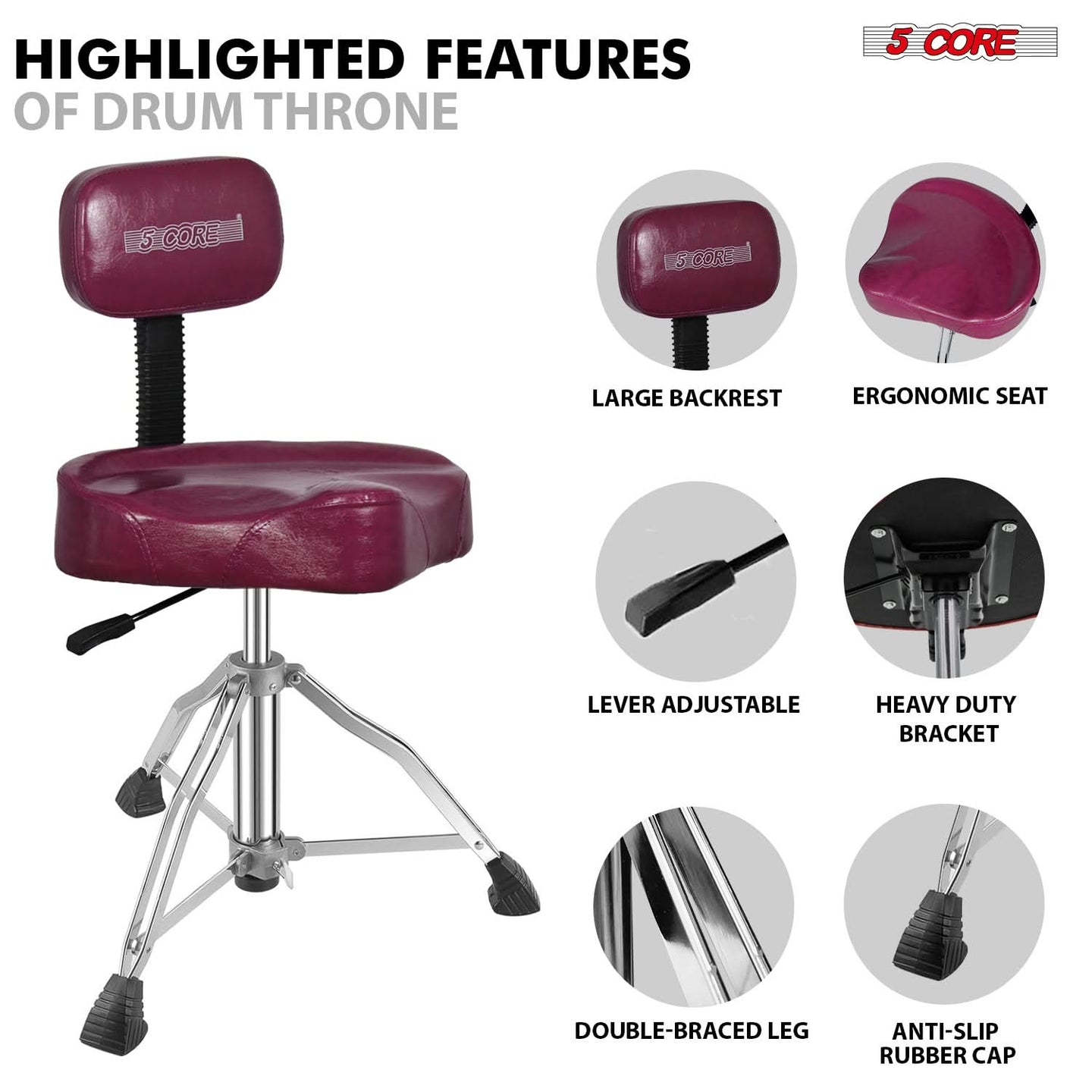 【Backrest for Lumbar Support】Features a sturdy, adjustable drum throne backrest that provides excellent lumbar support during extended practice or live performance. Promotes healthy posture while drumming, making it a versatile drum seat with backrest or musician chair.