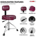 Engineered for superior strength and balance, the drum chair features a reinforced double-braced tripod base that supports up to 441 lbs — ensuring reliability for every drummer.