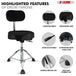 Upgrade your drumming experience with the 5 Core Air-Adjustable Velvet Saddle Drum Throne. Featuring a 4-inch high-density foam cushion with a soft velvet cover, this ergonomic saddle seat ensures maximum comfort for long practice or performance sessions. The air-lift height adjustment (19"–25") allows precise, effortless customization, while the double-braced steel legs and non-slip rubber feet provide rock-solid stability, supporting up to 441 lbs. Ideal for drummers, guitarists, and keyboardists, its sleek design and premium finish add style to any setup. Lightweight, durable, and versatile, this throne delivers unmatched comfort, stability, and professional appeal for musicians of all levels. |
