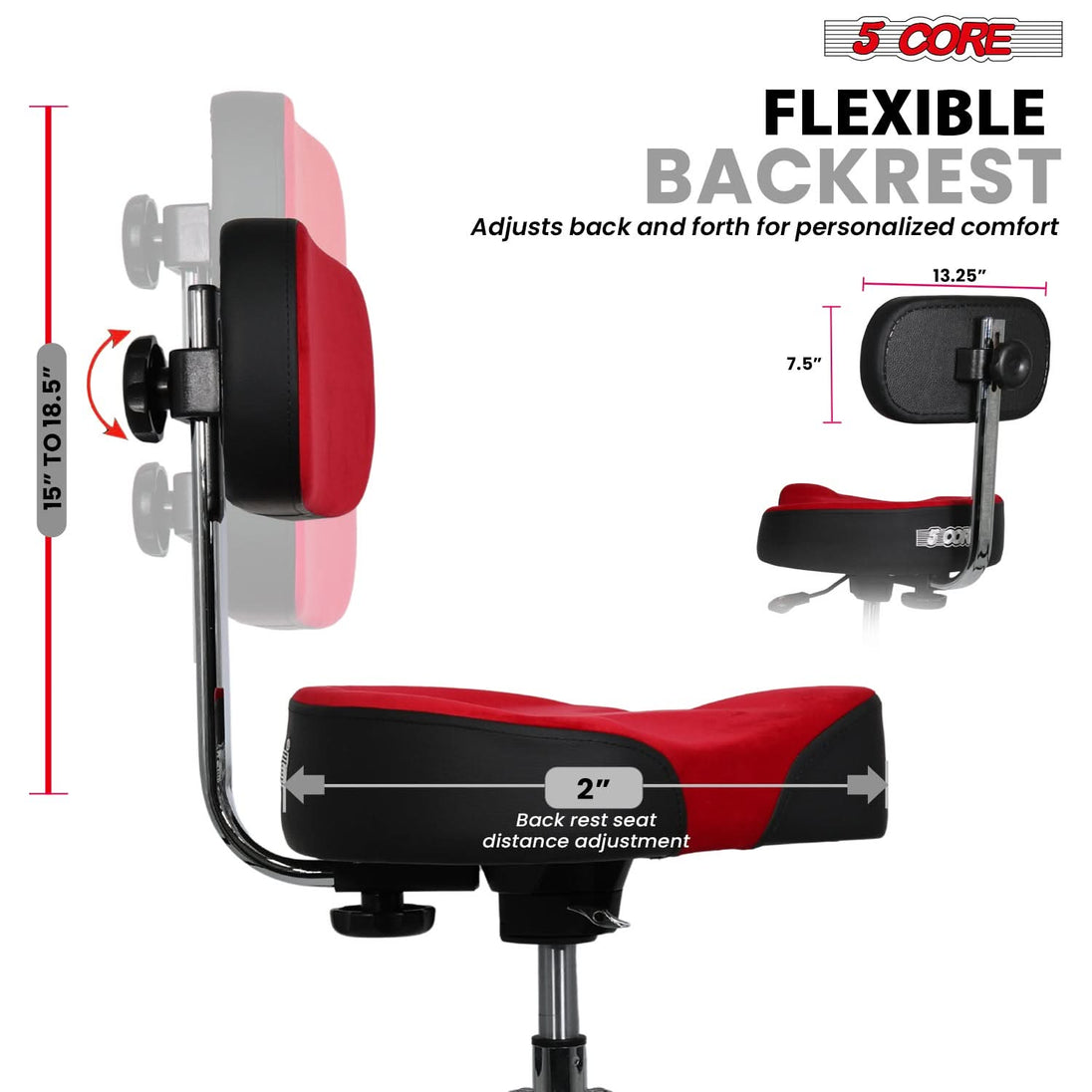 Upgrade your drumming experience with the 5 Core Air-Adjustable Velvet Saddle Drum Throne. Featuring a 4-inch high-density foam cushion with a soft velvet cover, this ergonomic saddle seat ensures maximum comfort for long practice or performance sessions. The air-lift height adjustment (19"–25") allows precise, effortless customization, while the double-braced steel legs and non-slip rubber feet provide rock-solid stability, supporting up to 441 lbs. Ideal for drummers, guitarists, and keyboardists, its sleek design and premium finish add style to any setup. Lightweight, durable, and versatile, this throne delivers unmatched comfort, stability, and professional appeal for musicians of all levels. |