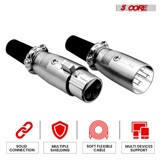 5Core XLR Connector Male Female to 1/4 Audio Jack 3 Pin Secure Mic Plug w Locking Ends 5 PAIR