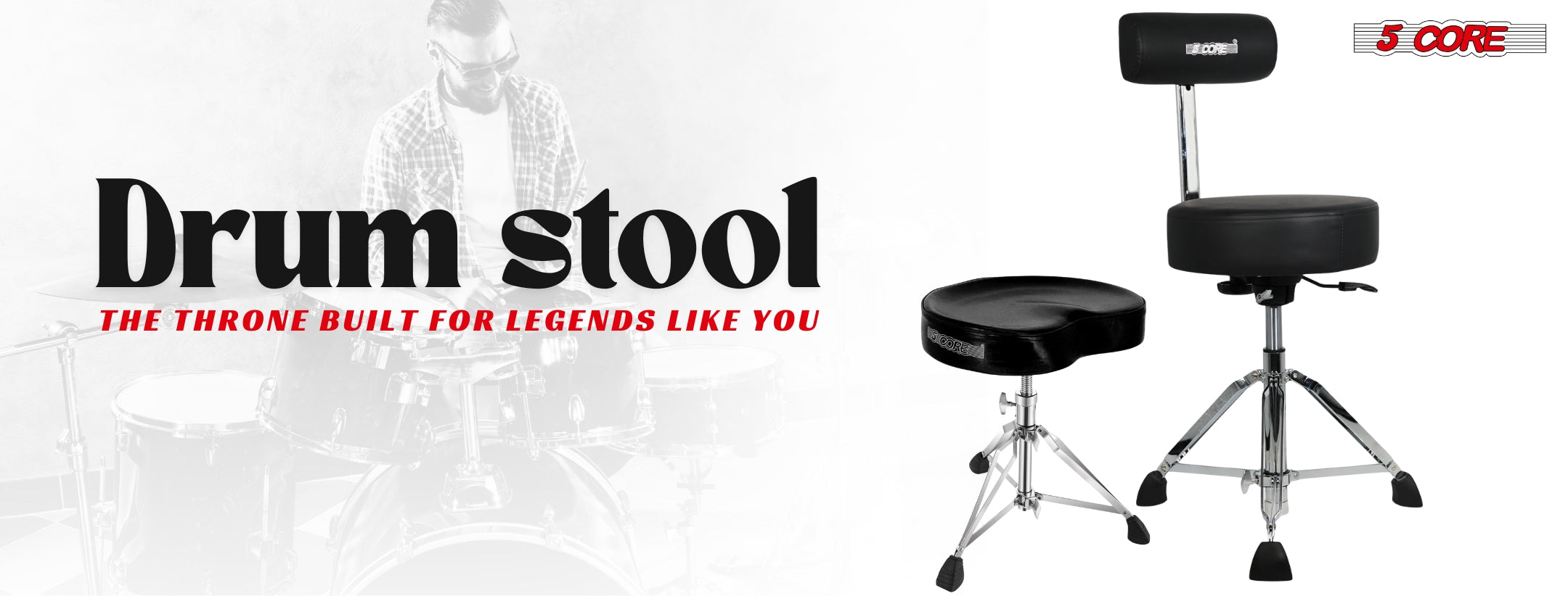 5 Core Drum Throne w Backrest 4" Padded Adjustable 26.5" Drummer Stool w Velvet Top 441Lb Capacity