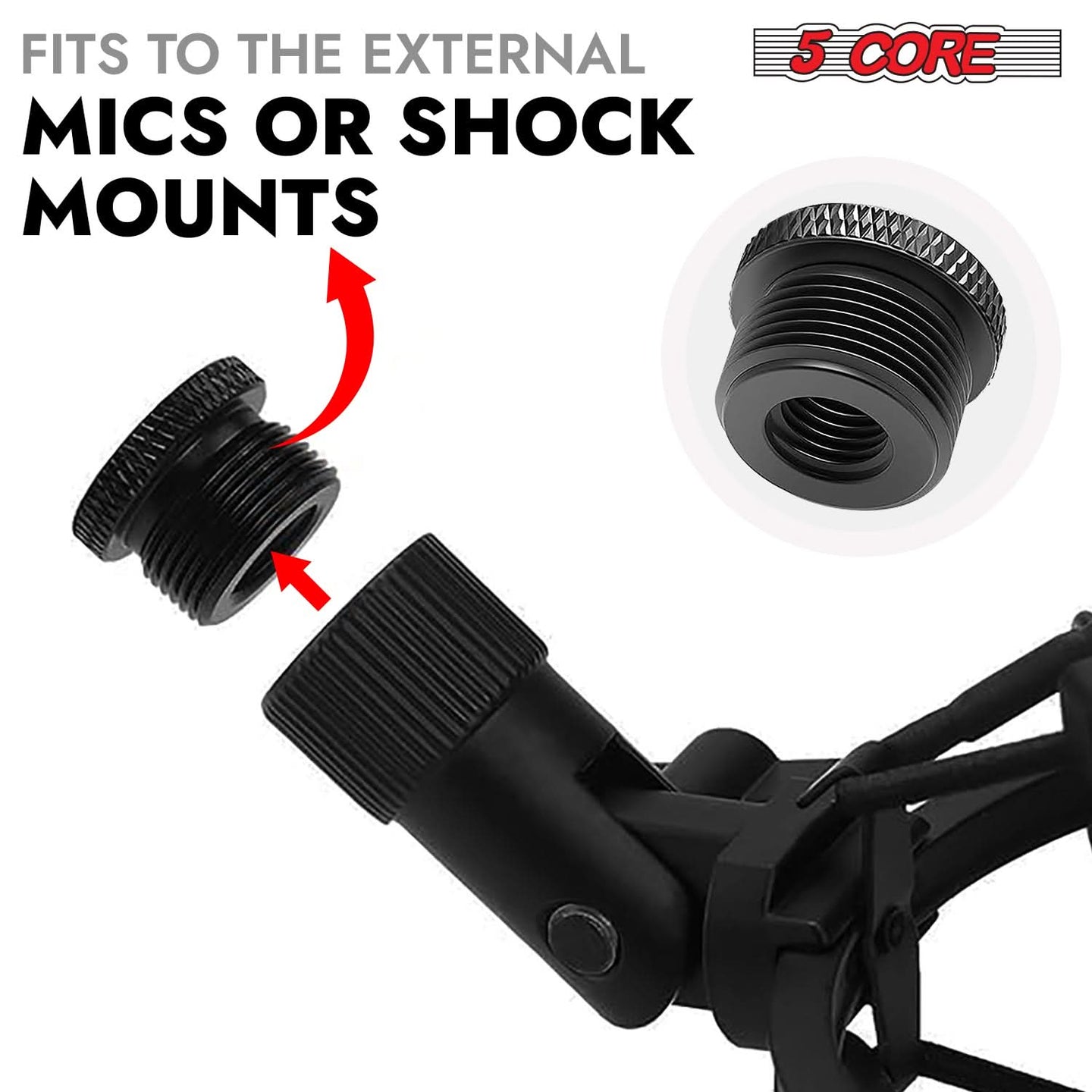 【Precise threading mic stand adapter 】– 5/8" male to 3/8" female thread, compatible with most microphone stands and adapters.