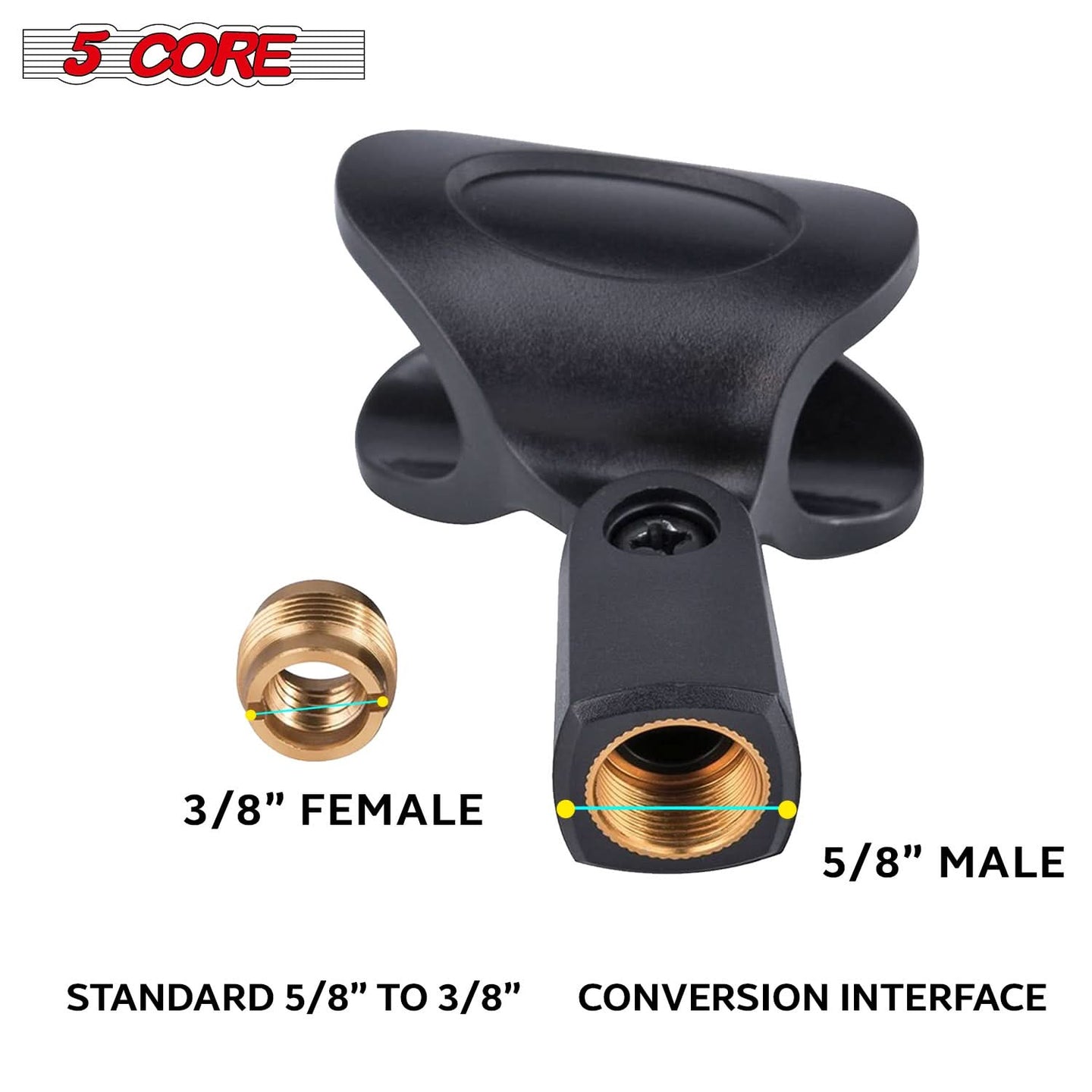 | Standard 5/8 to 3/8 threaded nut, it's simple and straightforward to attach to any standard microphone stand or boom arm. | The mic clip has a firm grip, designed to hold your microphone securely in place, preventing any accidental drops. | Compact and lightweight, ideal for those on the go, our clip holder is lightweight and easy to transport. | A unique texture inside the mic clip ensures your microphones will not slide off or lose their grip. |