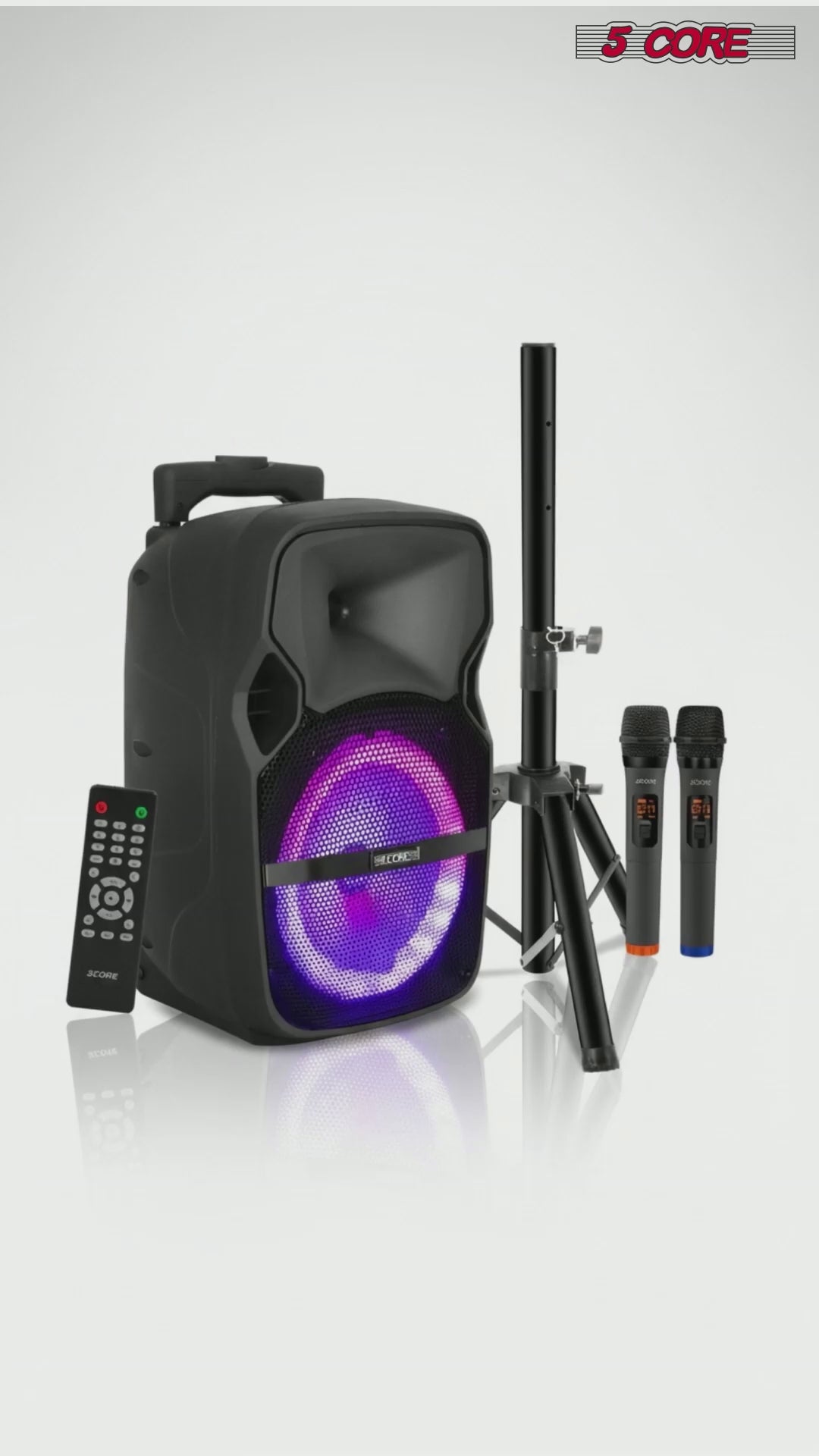 Experience powerful sound with the 5 Core DJ PA party speaker, featuring a 10 inch speaker and a frequency range of 70hz -17khz. Delivering an impressive 40W RMS power, a robust 16 Oz magnet, it ensures deep bass and clear highs. The super bullet tweeter enhances audio clarity. Designed for convenience, it includes a retractable handle, wheels, which make it easy to carry. This is a rechargeable DJ speaker with a subwoofer; you do not need an outlet to enjoy high quality music. One single charge will run for 3 to 5 hours. The remote control offers easy operation. The Bluetooth studio speaker system brings professional music to home, outdoors, or karaoke. |