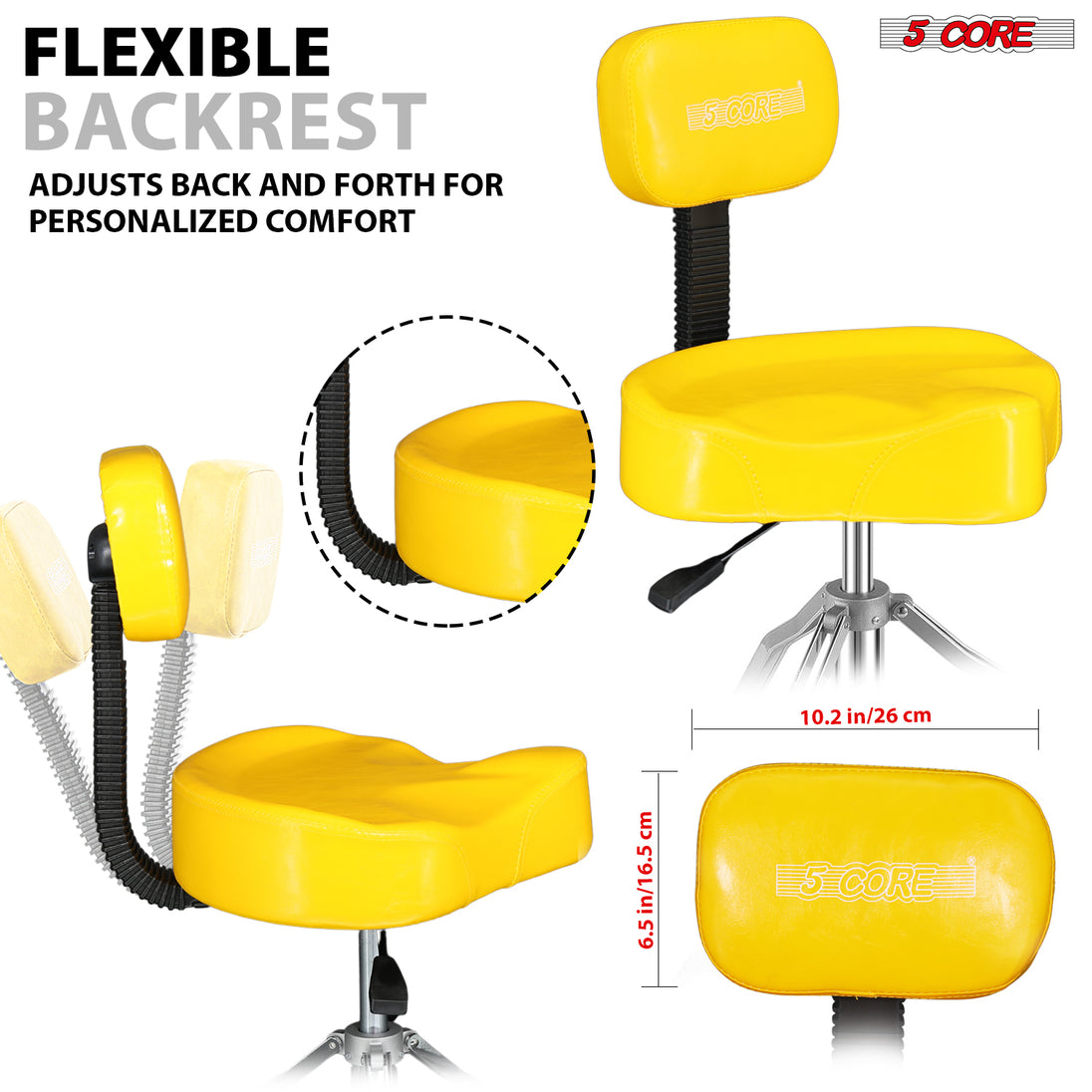 This drummer chair has many applications outside of drumming. It can be used as a guitar seat, DJ chair, cello chair, or music stool. |