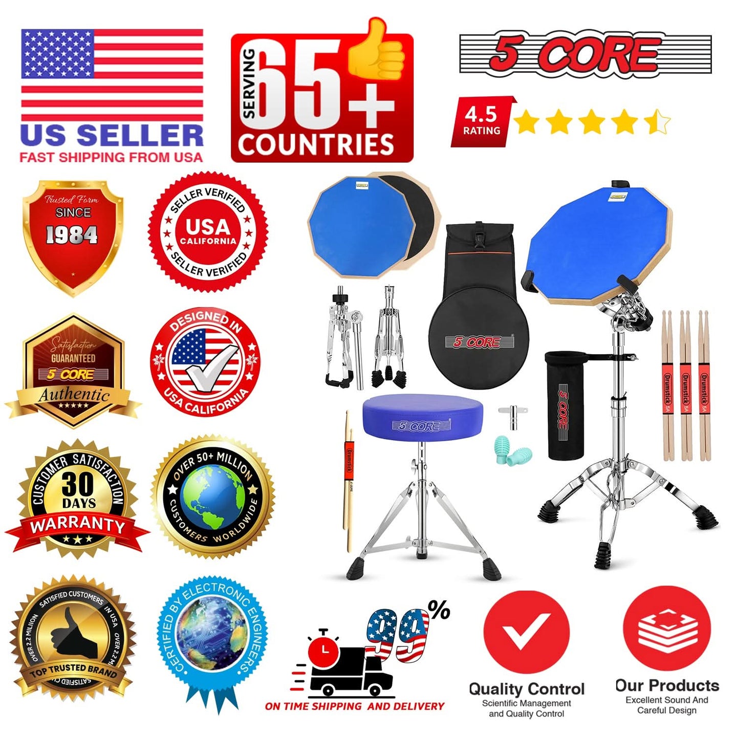 5Core Drum Throne Adjustable Guitar Stool Padded Seat + Drum Practice Pad Snare Drumming Stand