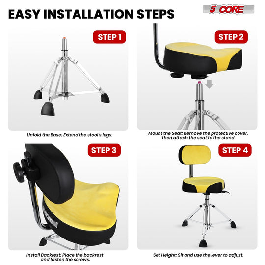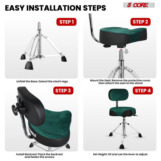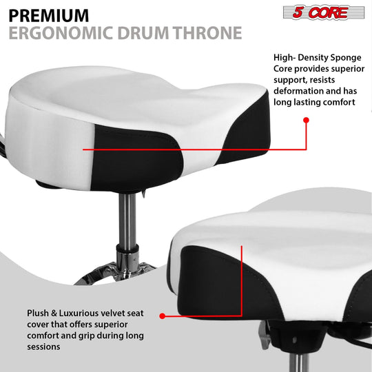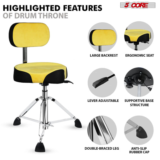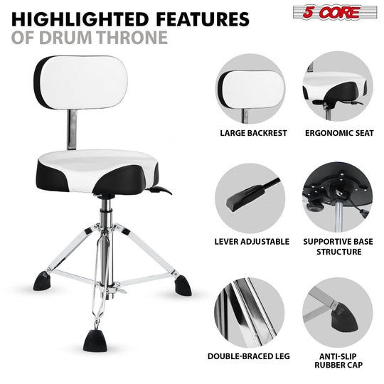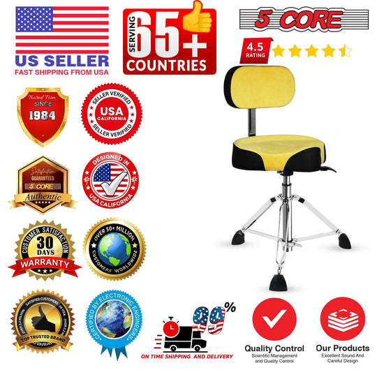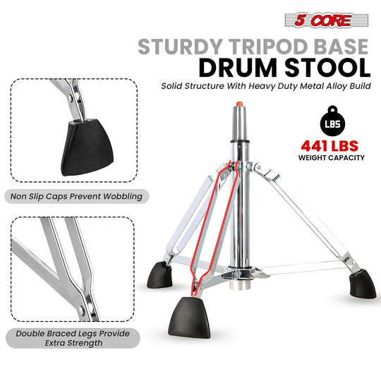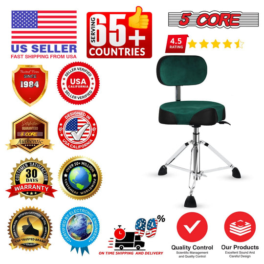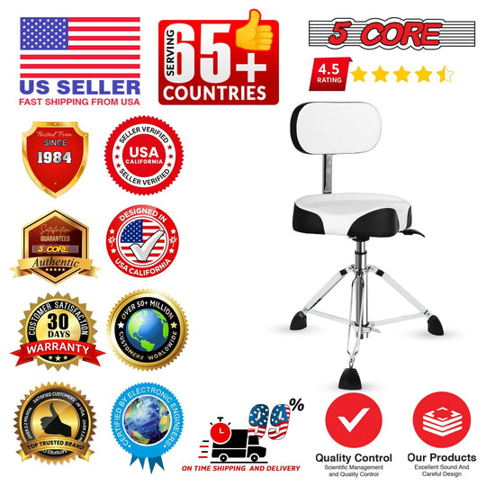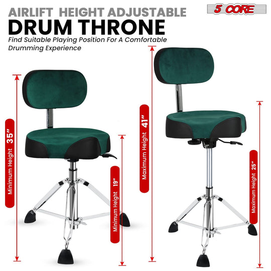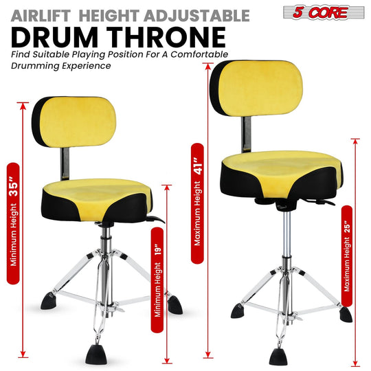 5 Core Drum Throne w Backrest 4" Padded Stool Airlift 25" Adjustable Drummer Stool 441Lb Capacity