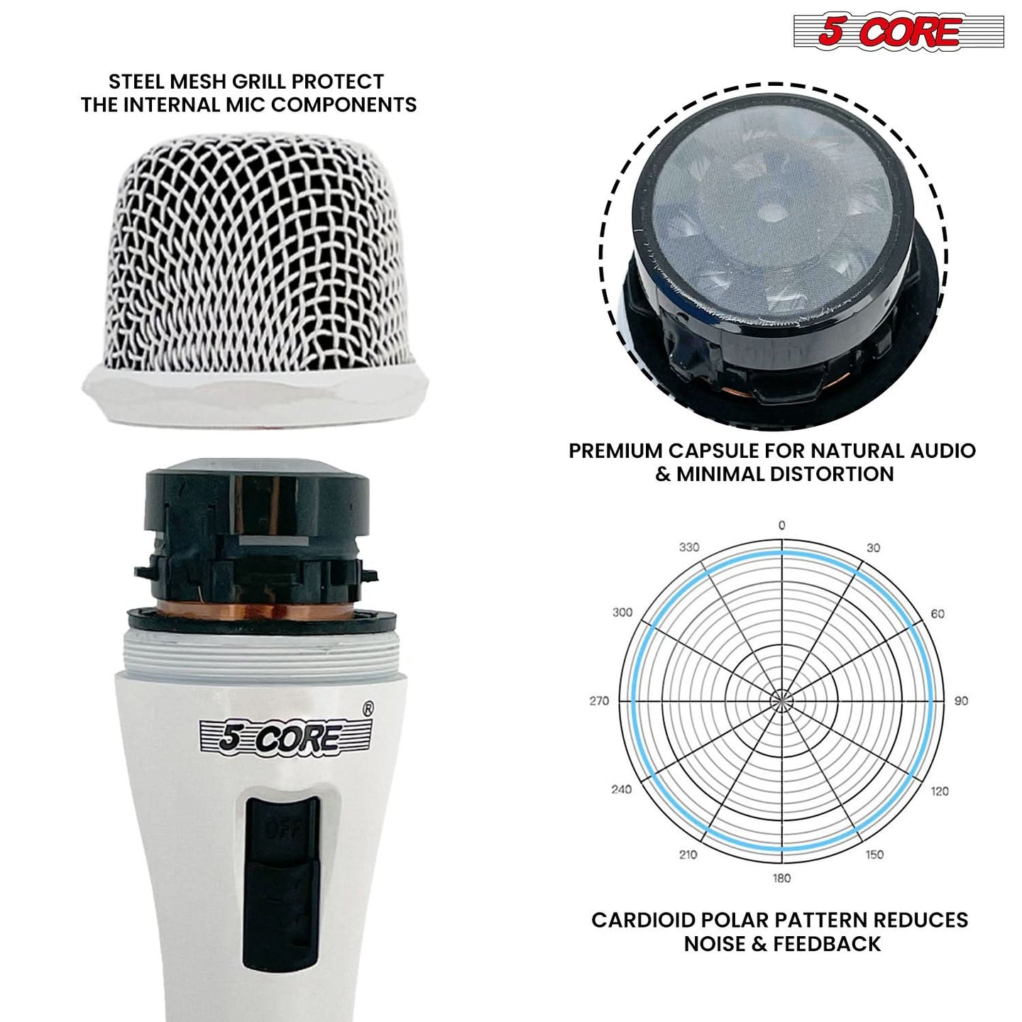 Experience superior audio quality with the 5 Core vocal handheld dynamic karaoke microphone, designed to deliver brilliant sound reproduction while reducing noise and feedback. The wide frequency response in the dynamic microfono ensures consistent sound pickup from the source and keeps its natural form. You don't need to do a lot of equalization to get the perfect sound. This is a professional vocal microphone for singing, designed to offer you clarity and amazing sound.