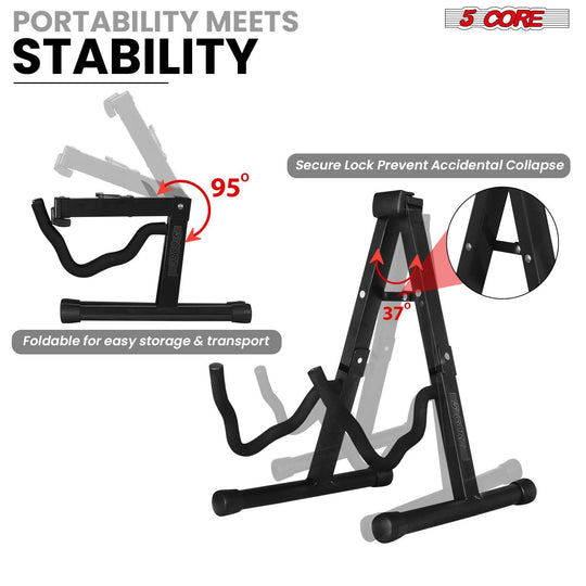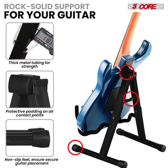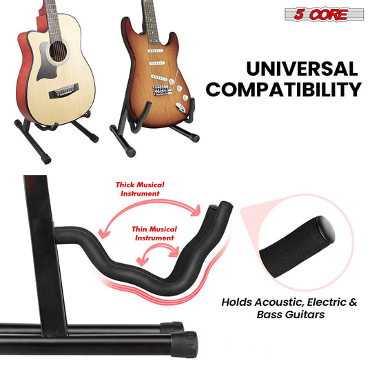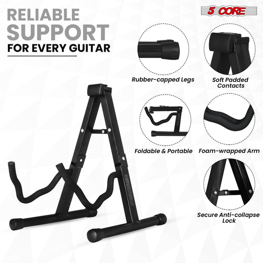 5 Core Guitar Stand 2PC A Frame w Soft Foam Arm Non Slip Rubber for Acoustic Electric Bass
