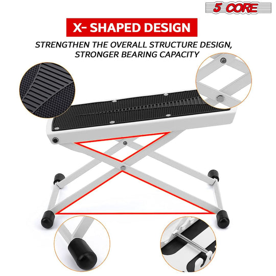 5Core Guitar Foot Stool Height Adjustable Folding Leg Rest Classical Footrest