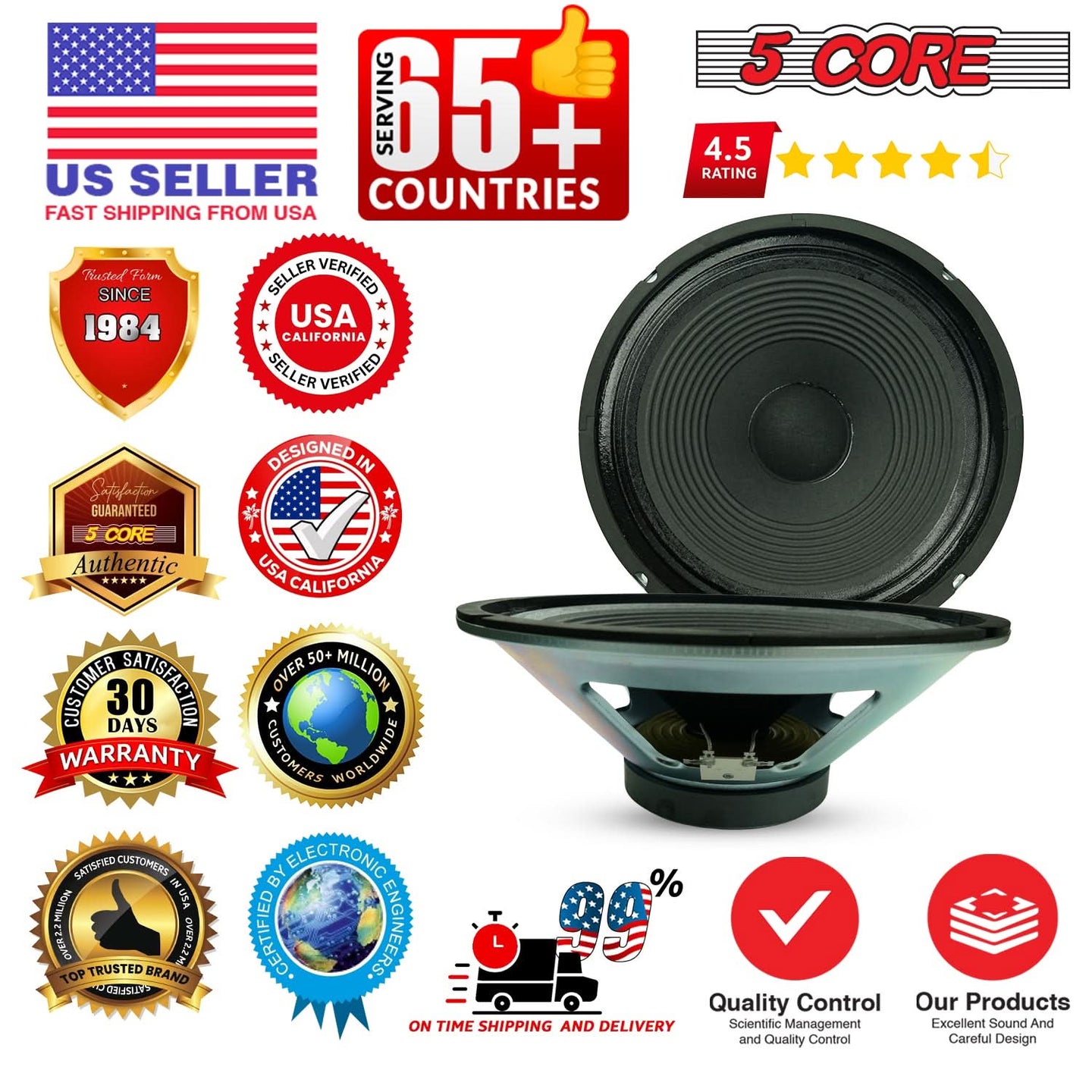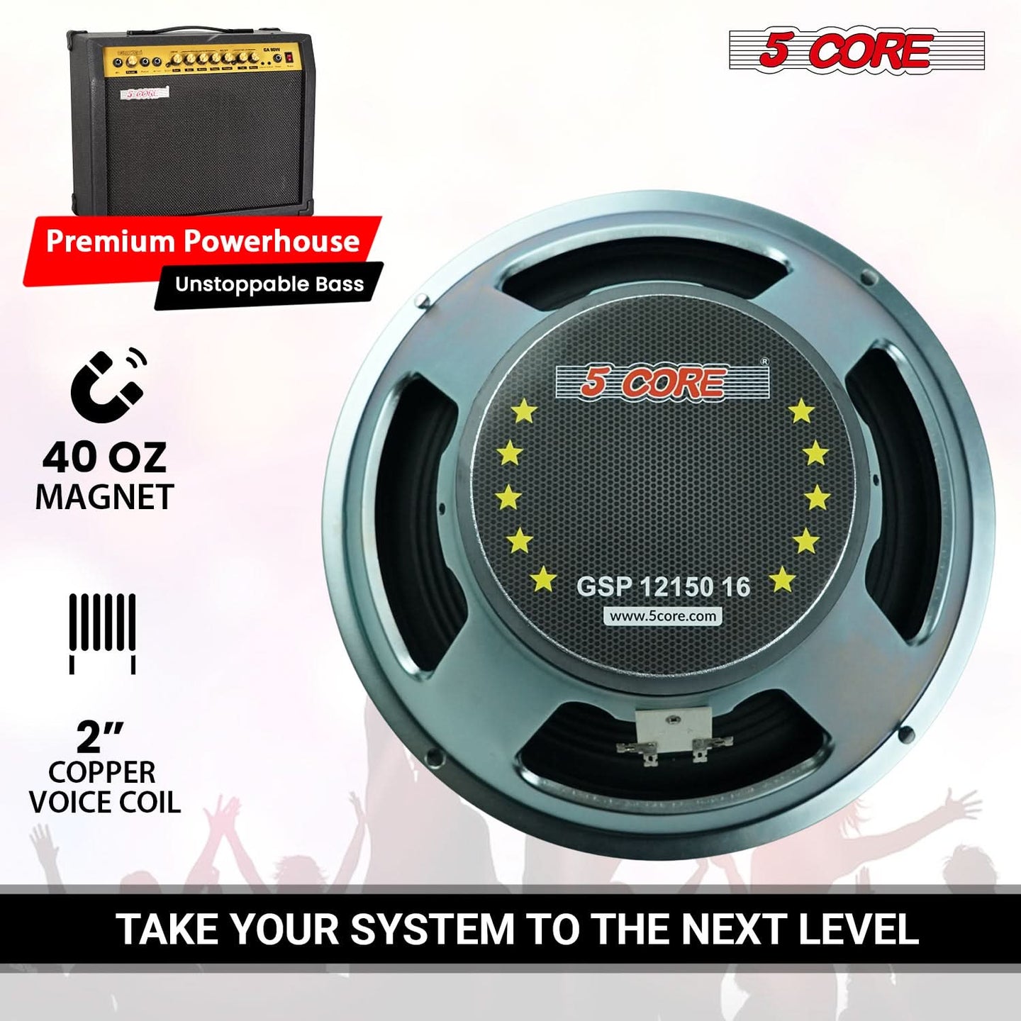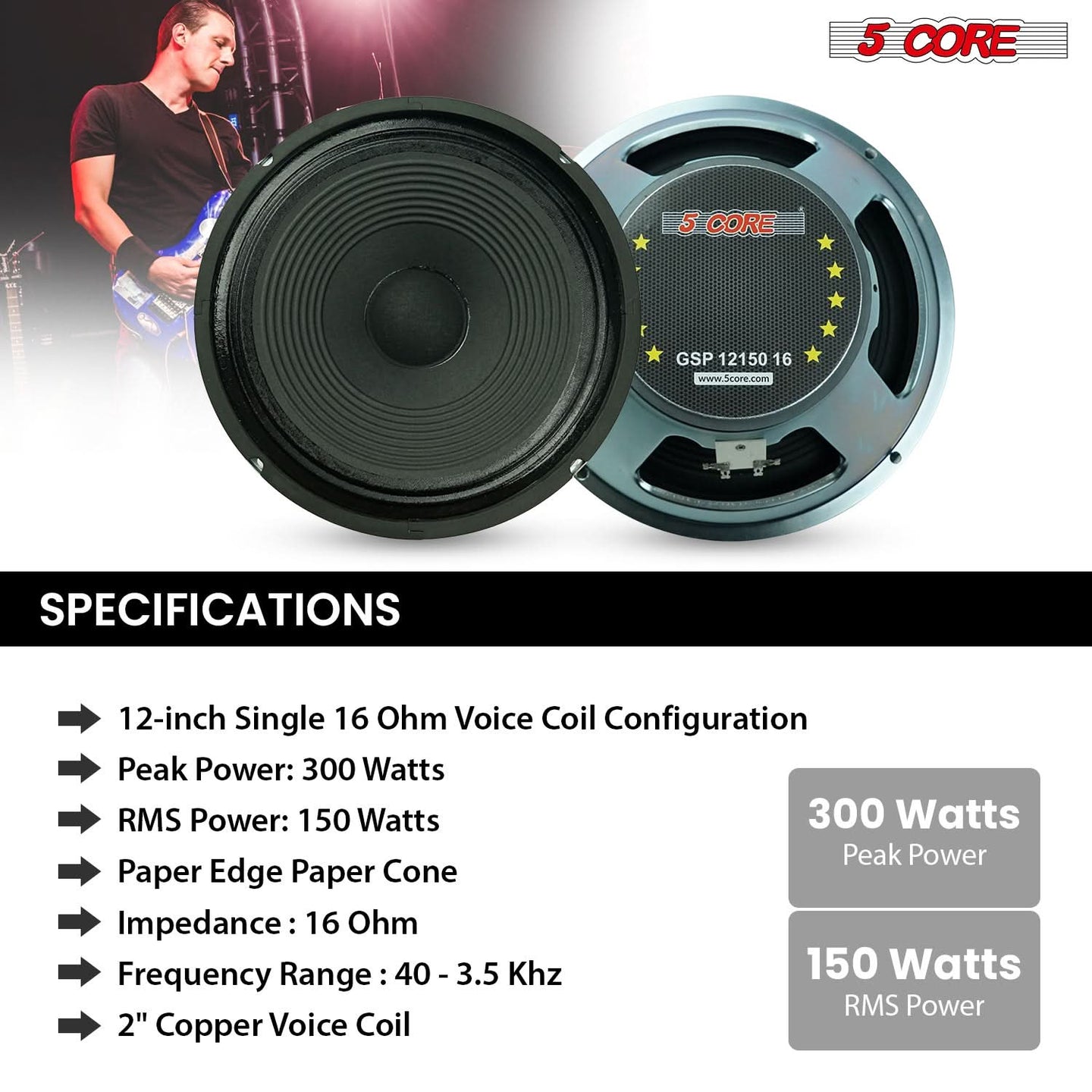 【Powerful 12 Inch Guitar Speaker】Designed for guitarists who demand punch and clarity, this 12 inch guitar speaker delivers 150W RMS / 300W peak power, making it ideal for guitar amplifiers, combo amps, and speaker cabinets used in practice, recording, or live performance.