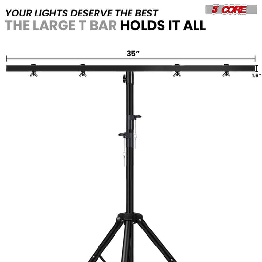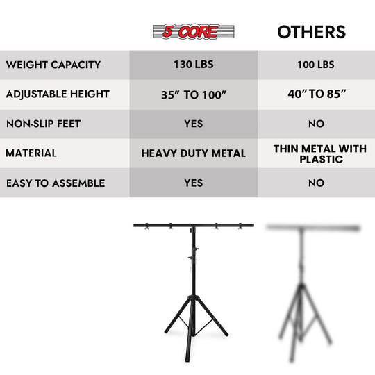 5 Core DJ Light Stand Height Adjustable 39-100" Heavy Duty Tripod Stage Lights Stands w Light T Bar