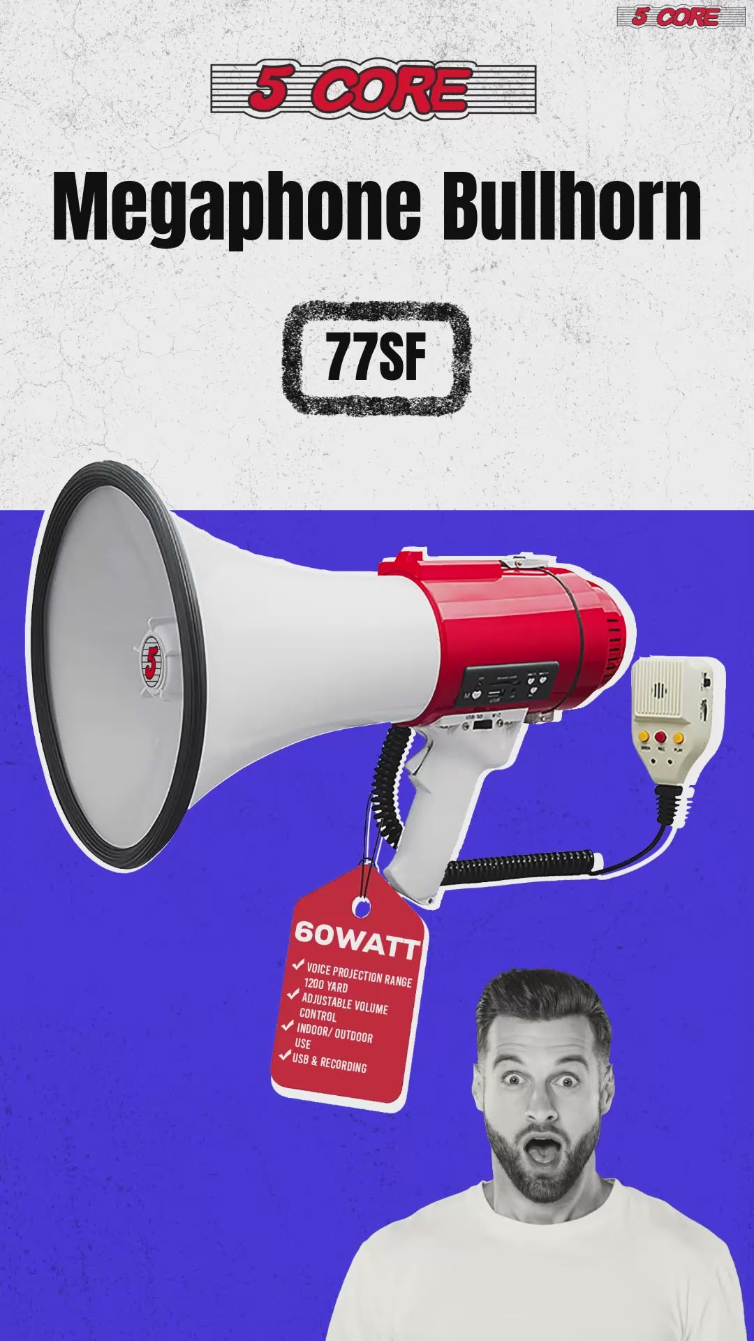 【Loud Megaphone】– Powerful 60W output projects your voice up to 1200 yards, ensuring you're heard loud and clear. Never strain your voice again.