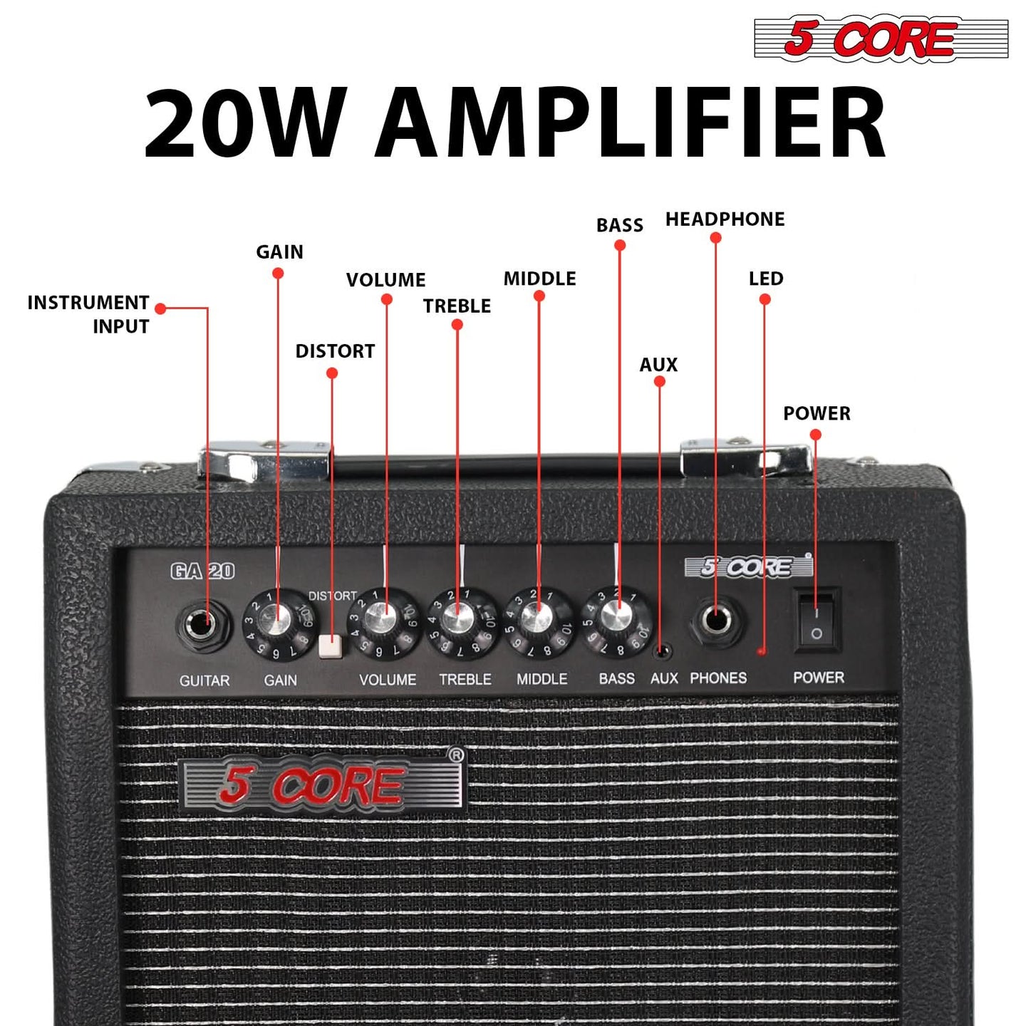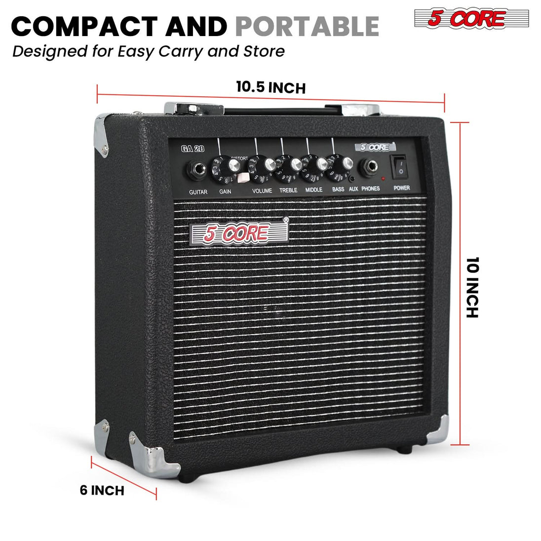Unlock your true sound with this 20 watt electric guitar amplifier, perfect for beginners and pros alike. Whether you're practicing at home or jamming on the go, this portable guitar amp delivers clear, powerful tone through its 6.5" speaker. Easily shape your sound with gain, bass, treble, and volume controls, plus enjoy silent practice with the guitar headphone amp jack and AUX input. Built tough with rubber-protected corners, it’s a reliable mini guitar amp for daily use. Ideal as a practice amplifier for electric guitar, bass amp, or acoustic amplifier—this compact amp fits every playing style.