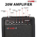 【Powerful 20 Watt Electric Guitar Amp】This compact electric guitar amplifier delivers 20W of power through a 6.5" speaker for clear, punchy sound. Ideal as a practice amplifier for electric guitar or mini bass amp.