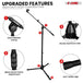 This professional adjustable microphone stand with a boom arm is perfect for studio, stage, karaoke, and live performances. The boom arm extends 19” to 35” with 180° rotation, while the stand height adjusts from 43” to 82”, making it ideal for sitting or standing. Use it as a boom mic stand for recording and concerts, or remove the arm for a straight mic stand. The tripod base with non-slip rubber feet ensures stability on any surface. Built with durable metal construction and an aluminum hub, this foldable, lightweight mic stand is easy to transport and set up for any event. |