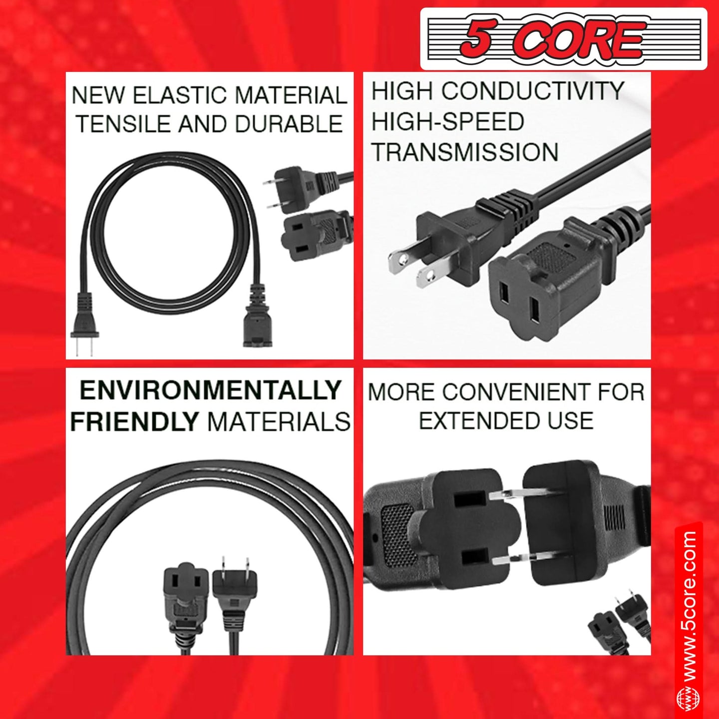 【Universal Compatibility】 2-prong AC power cord, designed to work with a wide range of devices and appliances for versatile use.