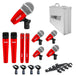 9 piece complete drum mic set mics, designed to pick low and high-range sounds from the snare, tom, cymbals, and kick bass. |