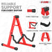 This heavy-duty A frame metal guitar stand floor offers unparalleled stability and durability with its thick steel construction and reinforced welded joints. Adjustable to fit acoustic, electric, ukulele, and bass guitars, this guitar support features soft padding to protect against scratches and dents. Anti-slip rubberized feet ensure your instrument stays secure. The guitar stand is easy to use, requiring no special tools for setup, and collapses for convenient portability. Designed for longevity with anti-corrosion paint, this A frame guitar holder provides a secure cradle arm to hold any guitar size. Perfect for musicians seeking a reliable and portable solution to safely display and store their instruments. |