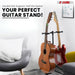 【Sturdy & Stable Tripod Base】The folding guitar stand features a strong umbrella-style tripod base made of durable metal. With three extended support legs and anti-slip rubber feet, this floor guitar stand provides maximum stability & safely hold your instruments.