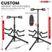 Keep your instruments safe, organized, and ready to play with the 5 Core Folding Guitar Stand. Built from durable metal with anti-corrosion paint, this universal floor guitar stand holds up to 2 guitars—perfect for electric, acoustic, bass, or even ukuleles. The adjustable height (17 to 25.5 inches) allows customized setup, while the tripod base and anti-slip feet ensure maximum stability. Soft padded contact points protect your instruments from scratches. Lightweight and foldable, it’s easy to store and carry—ideal for home, studio, or stage use. A reliable, space-saving solution for musicians seeking a high-quality multi-guitar stand. |