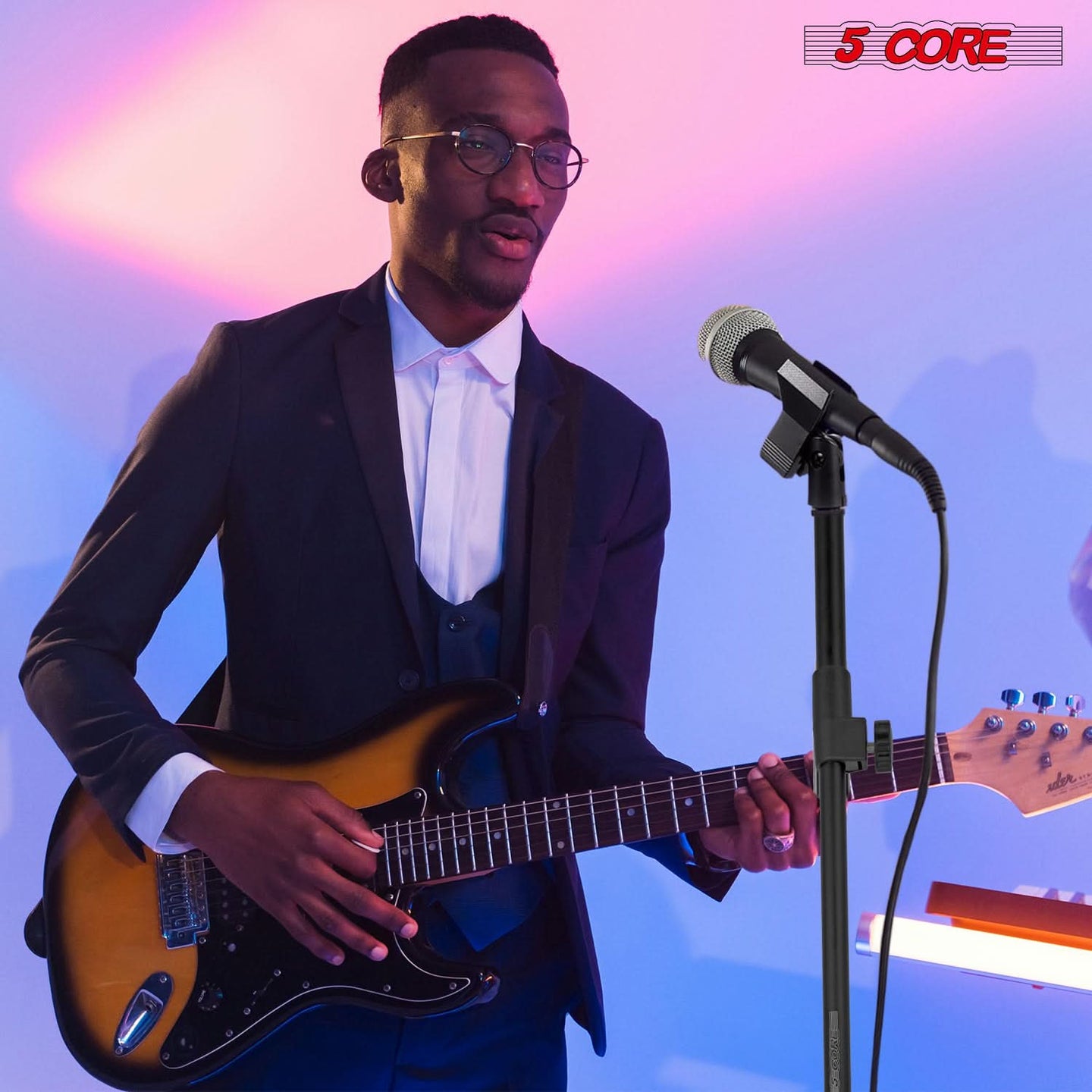 【Height Adjustable Mic Stand】 – Extends from 24 to 67 inches with a clutch mechanism for easy height adjustments, accommodating different performers and applications.