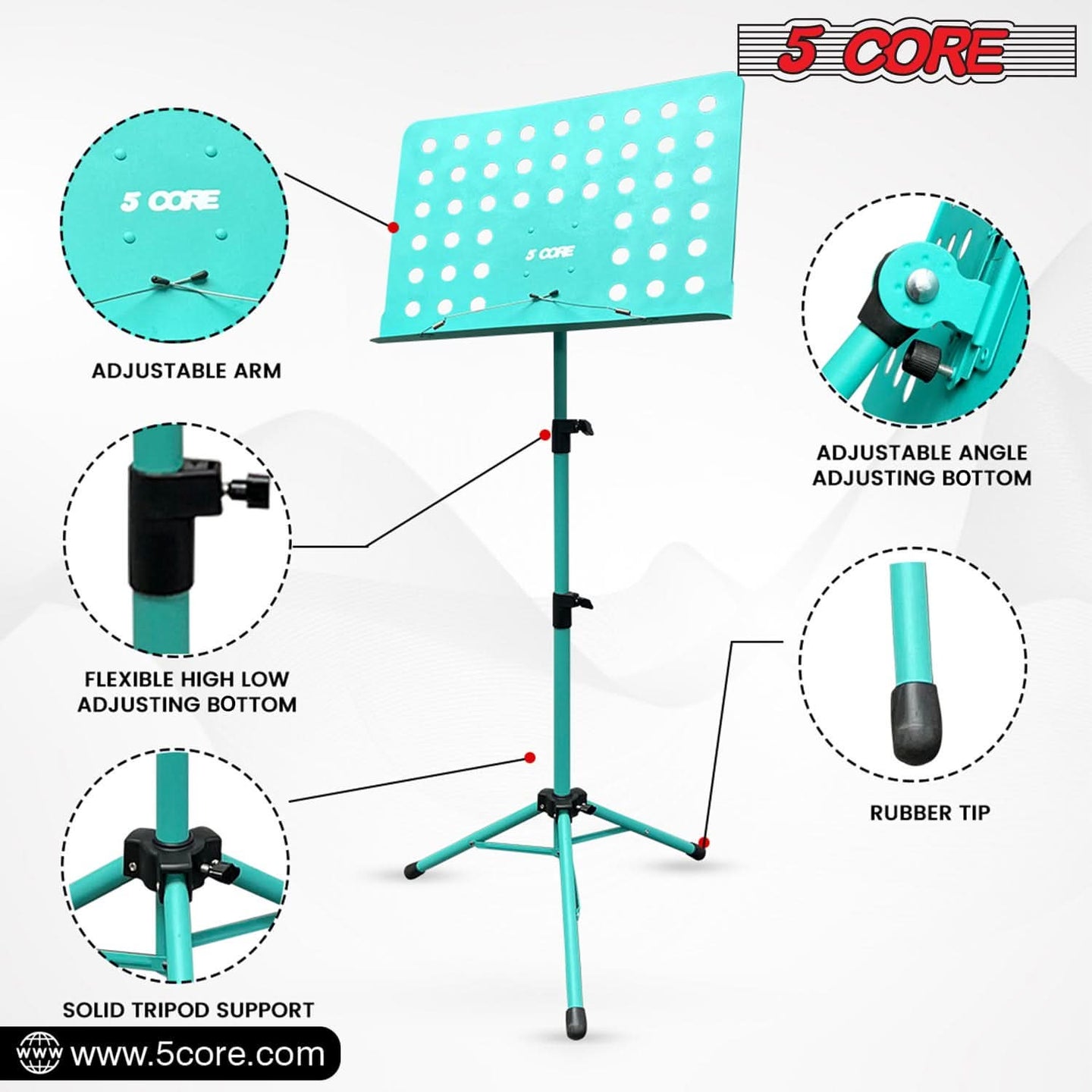 Improve your music experience with the 5 Core music stand. Crafted from durable metal, this music stand for sheet music offers reliable stability with an adjustable height of 29 to 55 inches, ensuring comfort whether you are seated or standing. |