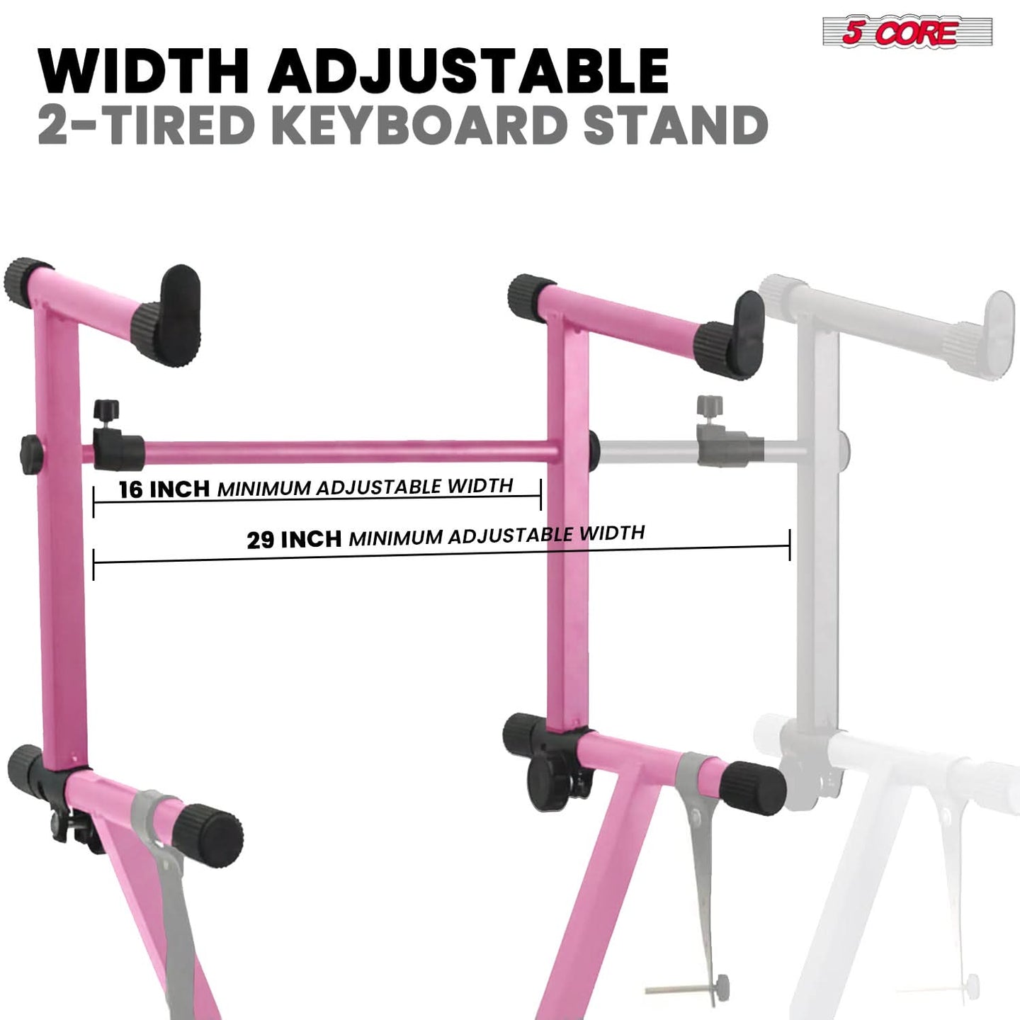 Upgrade your performance setup with the 5 Core 2-Tier Keyboard Stand Combo, featuring the KS 2X BPNK heavy-duty stand and KS 2T PNK adapter. Crafted from durable metal alloy, this combo supports up to 110 lbs on the main tier and 60 lbs on the second, offering unmatched stability. |