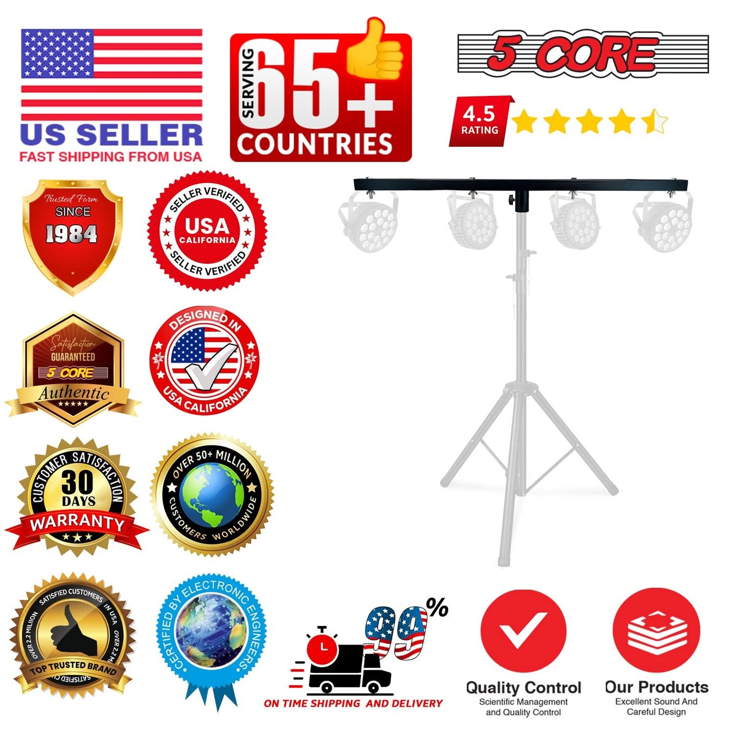 5 Core, ISO Certified headquartered in California, warehouse in Ohio, USA. Offering 600+ products since 1984. Tested and Certified Products, ensuring highest quality and reliability. |
