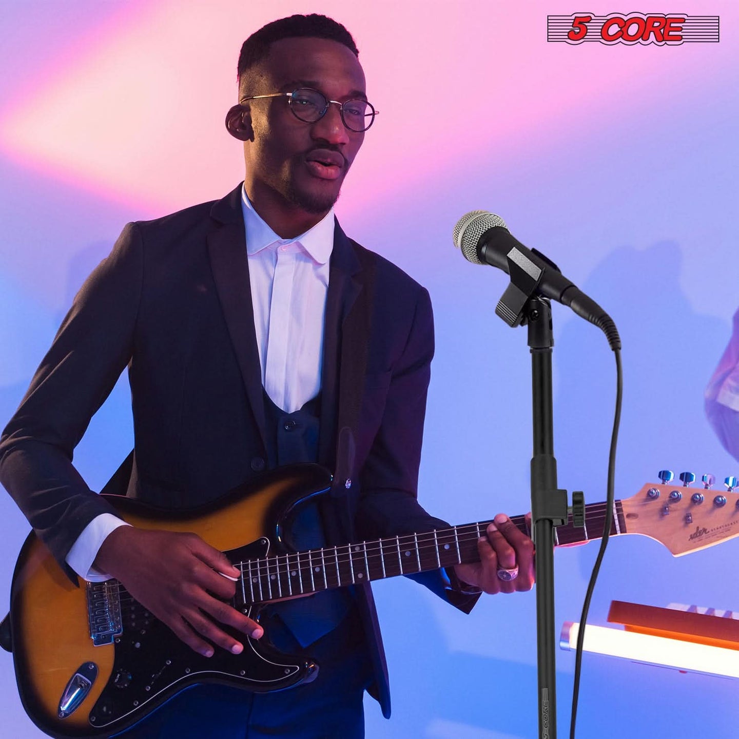 【Height Adjustable Mic Stand】 – Extends from 24 to 67 inches with a clutch mechanism, adapting to different performers and applications.