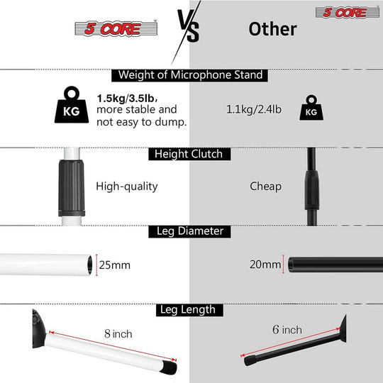 • Mic Weight & Size: Choose a stand that can securely hold your specific microphone, especially heavier condenser mics.