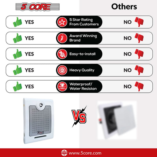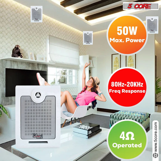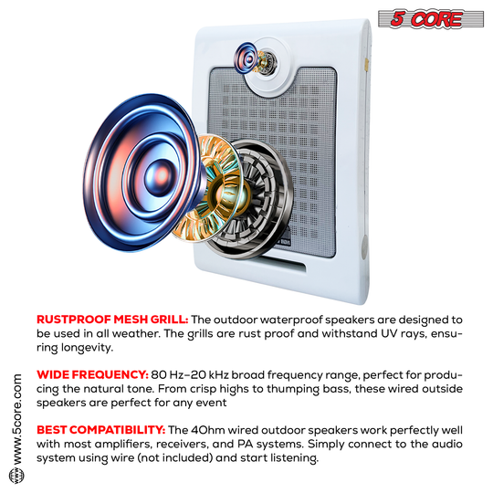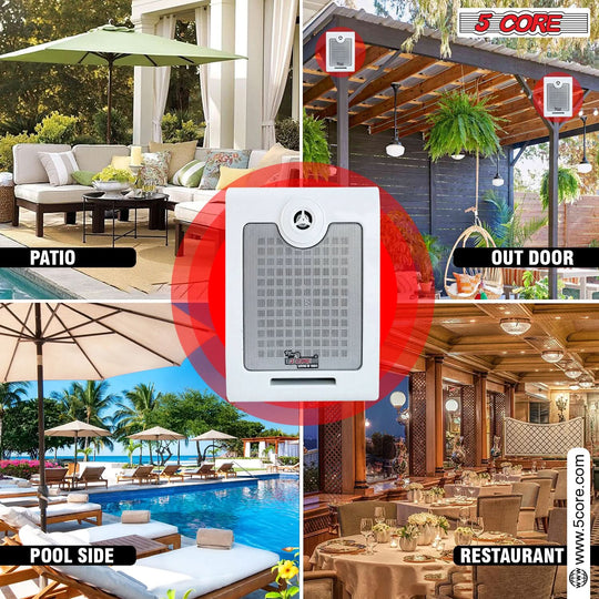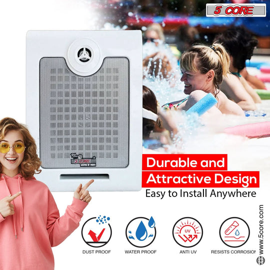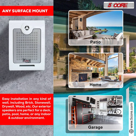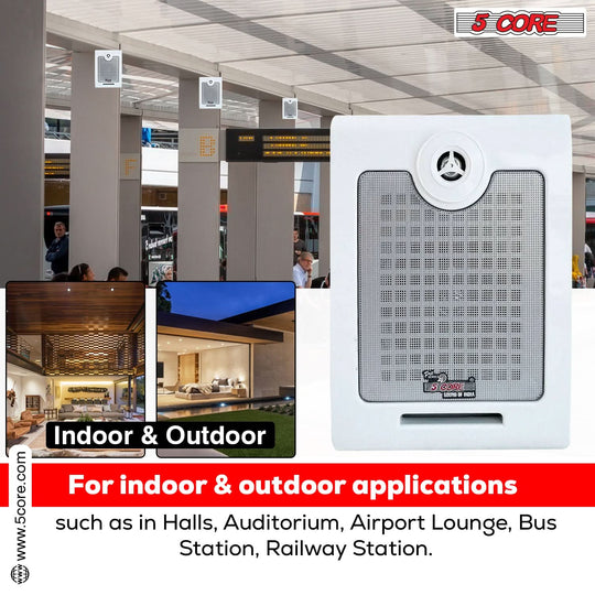 Aesthetic looks with surround sound are what you expect from 5 Core Wall speakers. Having a wide range in wattages and sizes they come as easy-to-mount wall mount speakers. An Integrators Choice to use in indoors or outdoors, in restaurants, clubs, offices, warehouses, factories, and public places. Used for announcements and paging, they become even better with music. the waterproof Water-Resistant features are a total bonus.