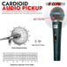 The dynamic mike uses a cardioid pickup pattern that effectively focuses on your voice while reducing surrounding noise. Ideal for loud environments, stage use, or live recordings. |