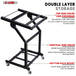 Experience unparalleled durability with our 9U professional DJ rack stand, made from heavy duty iron and powder coated for UV and rust resistance. Effortlessly move your setup with sturdy four wheels, featuring a reliable locking mechanism. The raised bottom enhances airflow and heat dissipation, safeguarding your equipment from overheating. This 2 layer DJ stand holds audio mixers on top and larger equipment below, with an adjustable angle for easy access. Boasting a sturdy build with a 220.50 lb capacity, this 9U rack stand supports the heaviest pro audio equipment safely. |