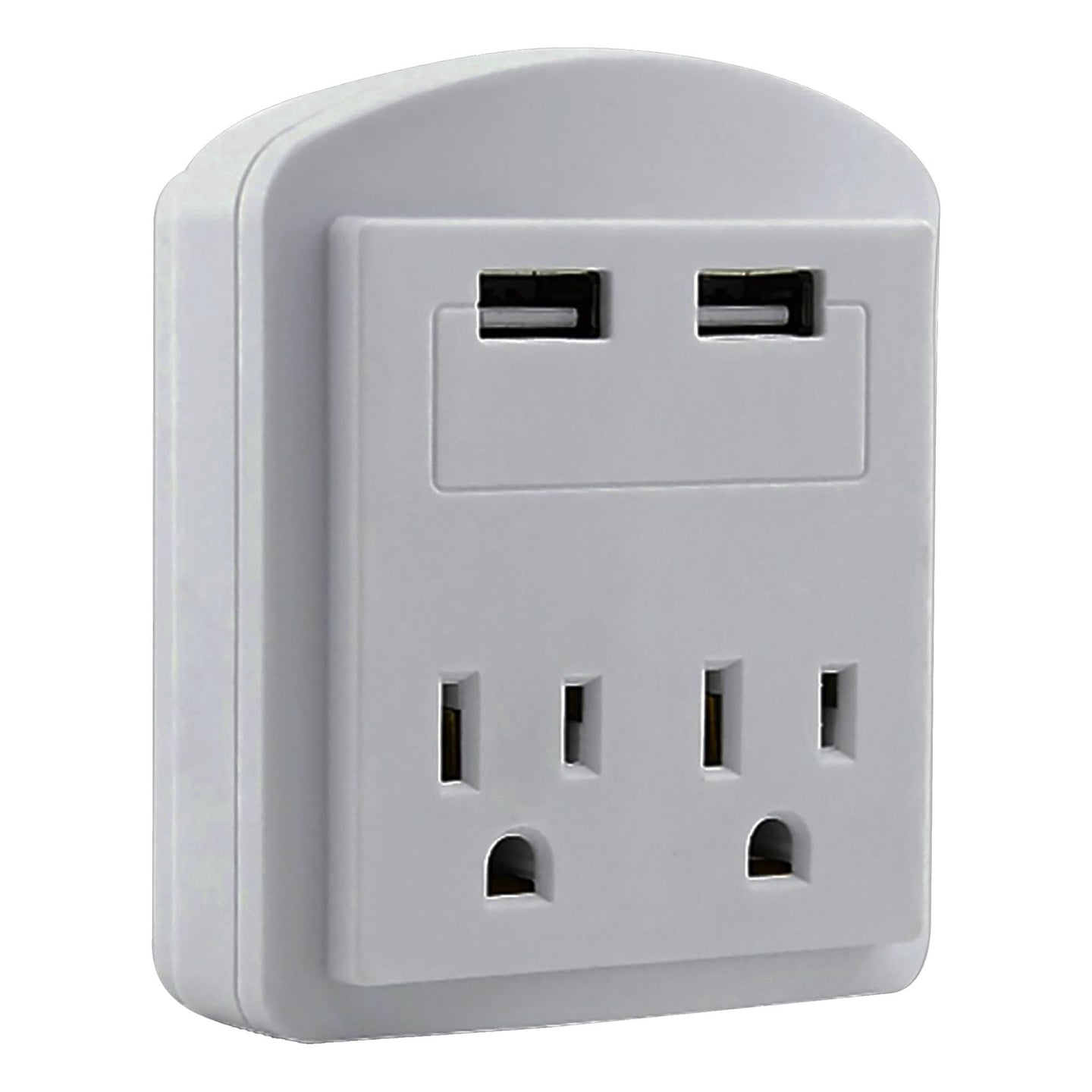 【DUAL USB WALL CHARGER】Features fast USB outlets receptacles that act as a charging block for all your devices, making it ideal for bedrooms, offices, and dorms.