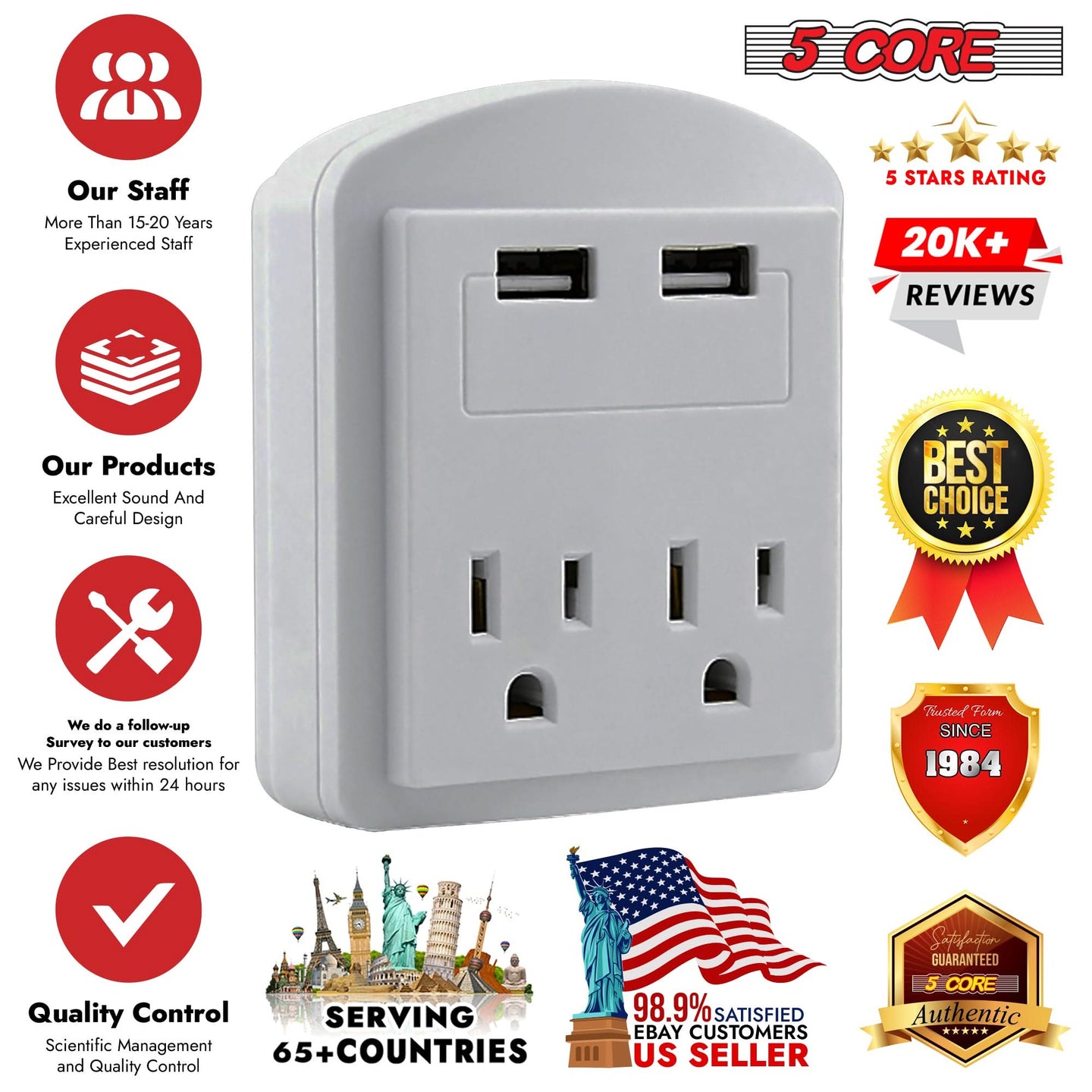 | Supports high-wattage devices like laptops, gaming consoles, and more while maintaining a safe and efficient power distribution. | Featuring over-voltage, over-current, short-circuit, and heat-resistant protection to keep your devices and home safe. | Constructed with tough, long-lasting ABS materials that withstand daily wear and tear, this multi-outlet plug-in is built to perform under all conditions. | Works seamlessly with all devices, including smartphones, tablets, laptops, smart home gadgets, and more. Ideal for USB wall plugs, multiple outlet wall plug |