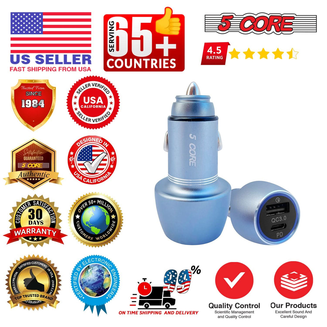 Keep all your devices charged and ready with this universal car charger. Featuring 1 USB and 1 PD QC 3.0 port, this USB C car charger powers multiple gadgets at once. Experience ultra-fast charging with PD support. Built-in safety features prevent overcharging, overheating, and short-circuiting. Made from premium aluminum, this cigarette lighter adapter ensures long-term durability. The cargador para carros' compact design fits seamlessly into your car's interior, while the soft LED light offers clear visibility in low-light conditions. Advance cooling technology prevents overheating, and universal voltage compatibility makes it perfect for any vehicle. Stay connected effortlessly with our reliable and efficient car USB charger multi port. |