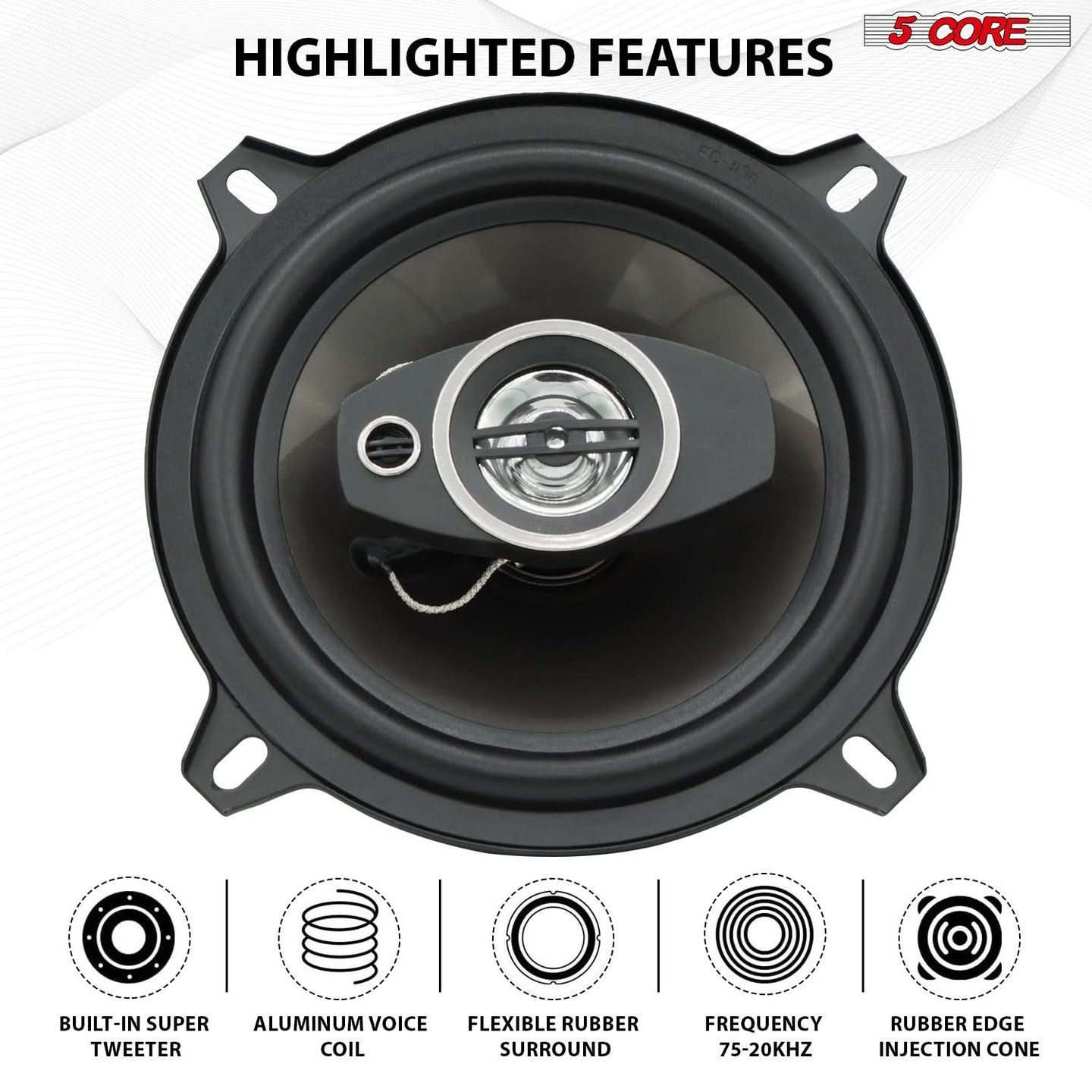 【Wide frequency response】Experience rich and immersive sound with these 5-inch car speakers, offering a wide frequency response of 75-20KHz. Whether you're enjoying deep bass or crisp highs, these car coaxial speakers deliver superior audio balance and clarity.