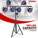 The T-Bar light stand is foldable, making it easy to transport and store, perfect for mobile DJs and event setups. |