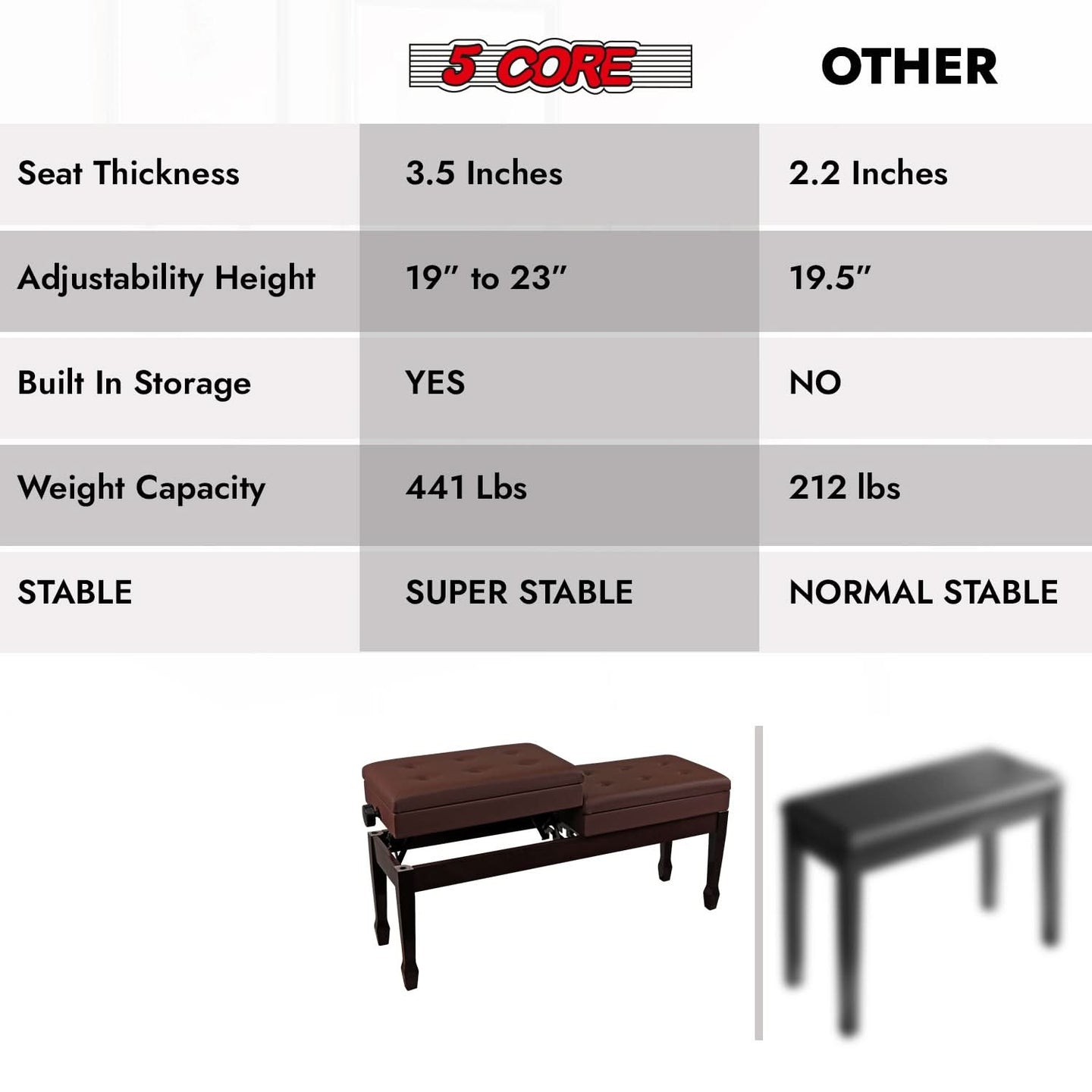【Height Adjustable Piano Seat】Easily adjust the height from 19" to 23" using the side knob, making it suitable for both adults and kids.