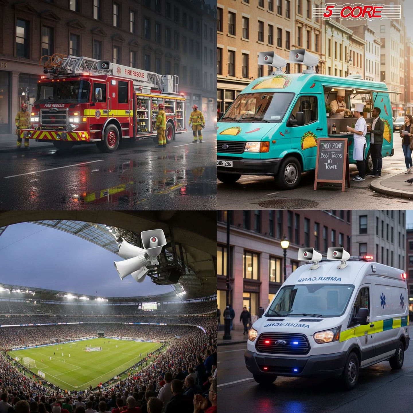 【All Weather Heavy Duty Housing】Built with rugged ABS material to handle rough outdoor environments. The horn works in rain, snow, heat and dusty environments, well-suited for ice cream trucks, mobile setups, and warehouses, where a sturdy loud speaker horn is essential.