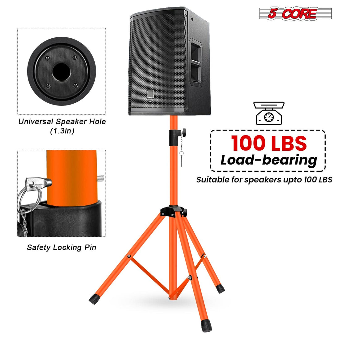 Elevate your sound with our height adjustable tall studio monitor stands, ranging from 40 to 72 inches. Built from durable steel with reinforced joints and anti-corrosion paint, it supports up to 100 lbs. The tripod floor speaker stands featuring a universal 35mm pole mount, it's perfect for mounting most speakers, studio monitors. The anti-slip design with tripod legs and non-slip rubber caps on the PA stand pole mount ensures superior stability. Secure your setup with the knob-style tension locking system and sturdy metal pin for safe raising and lowering. This heavy duty DJ stand Tripod ensures reliable performance for every event. |